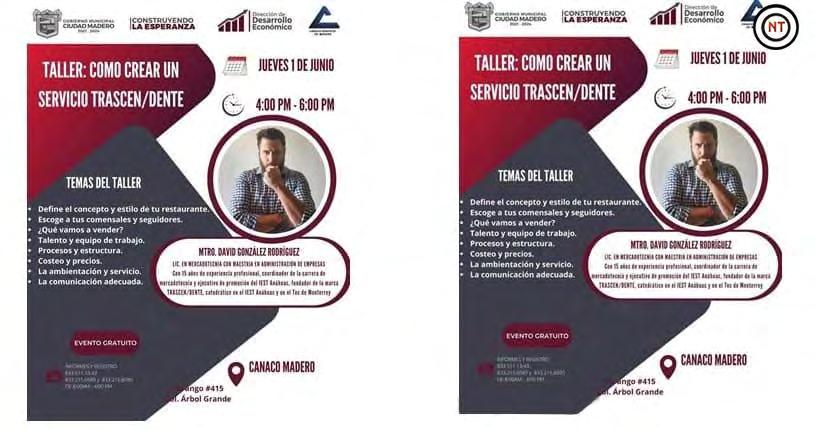 Con el propósito de apoyar a la comunidad emprendedora en su camino al éxito, el Gobierno de Ciudad Madero que preside el alcalde Adrián Oseguera Kernion, invita a través de la Dirección de Desarrollo Económico, al taller gratuito “Cómo crear un servicio Trascen/Dente”.