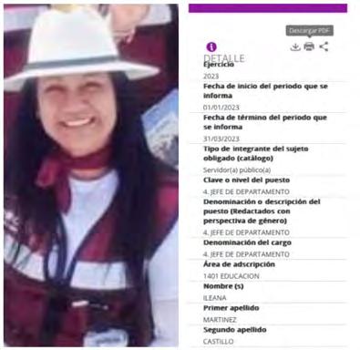 Profesora, Iliana Martínez Castillo Puesto en el municipio como Jefe Departamento Educación