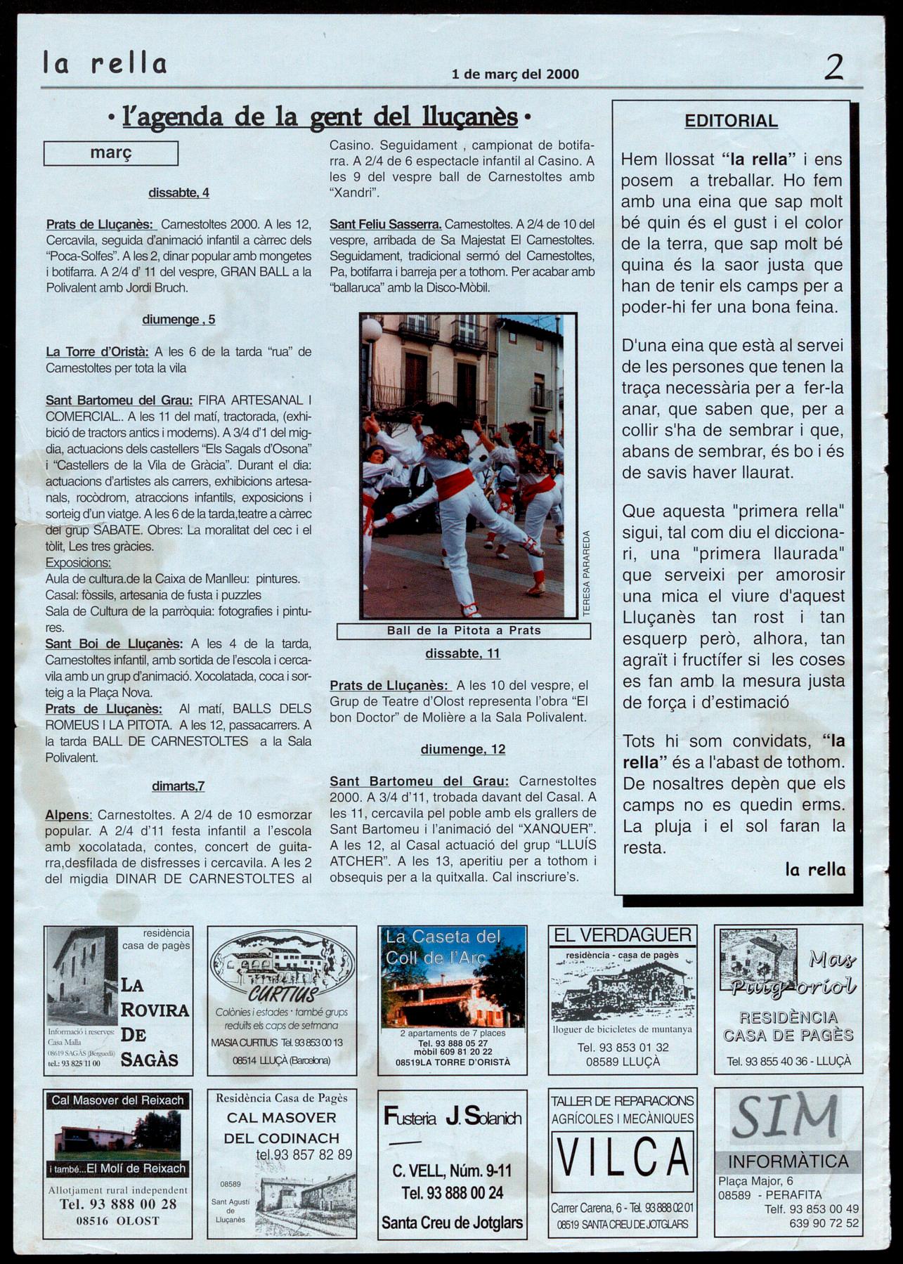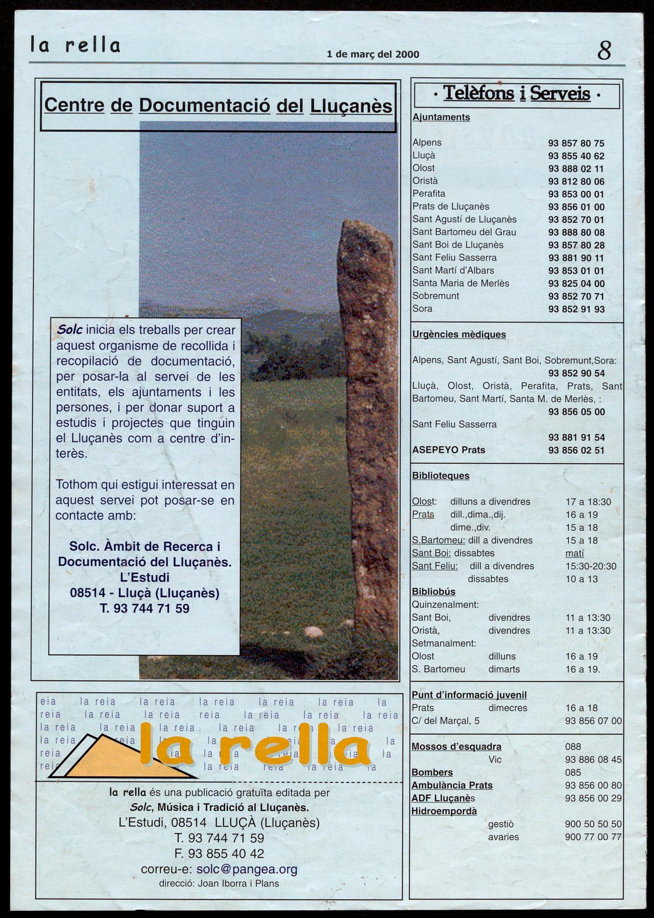 la rella és una publicació grátuïta editada per Solc, Música i Tradició al Lluçanès. L'Estudi, 08514 LLUÇÀ (Lluçanès)