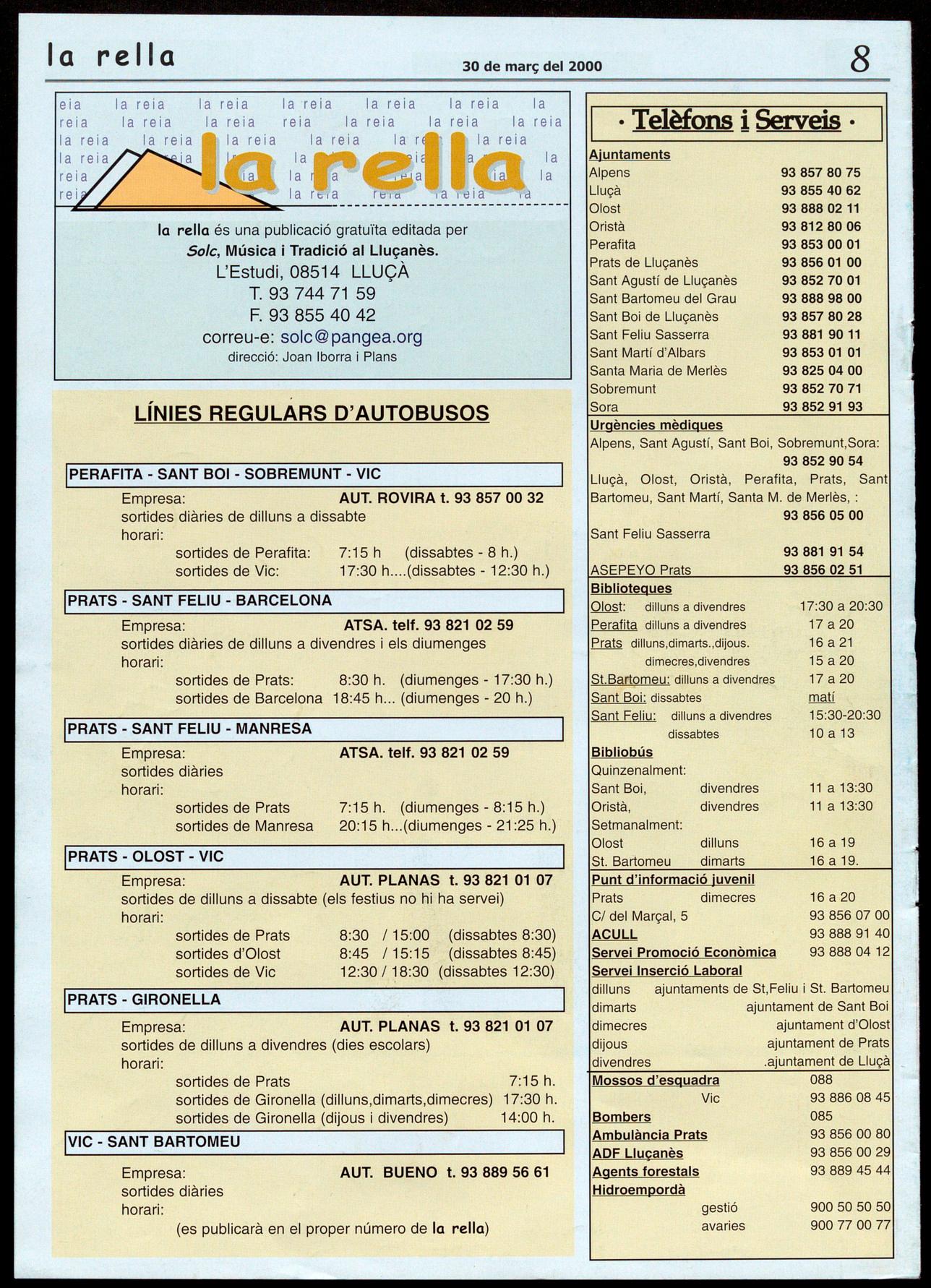 la rella és una publicació gratuïta editada per Solc, Música i Tradició al Lluçanès. L'Estudi,08514 LLUÇÀ