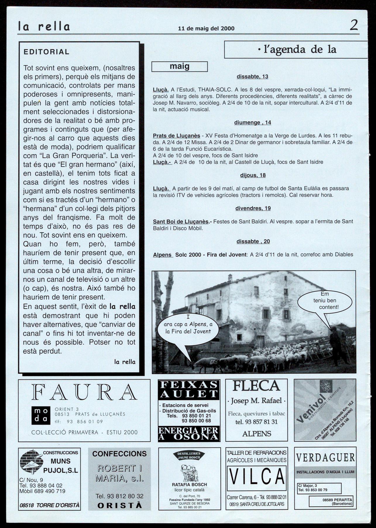 la rella és una publicació gratuïta editada per Solc, Música i Tradició al Lluçanès. L'Estudi, 08514 LLUÇÀ T. 93 744 71 59 627