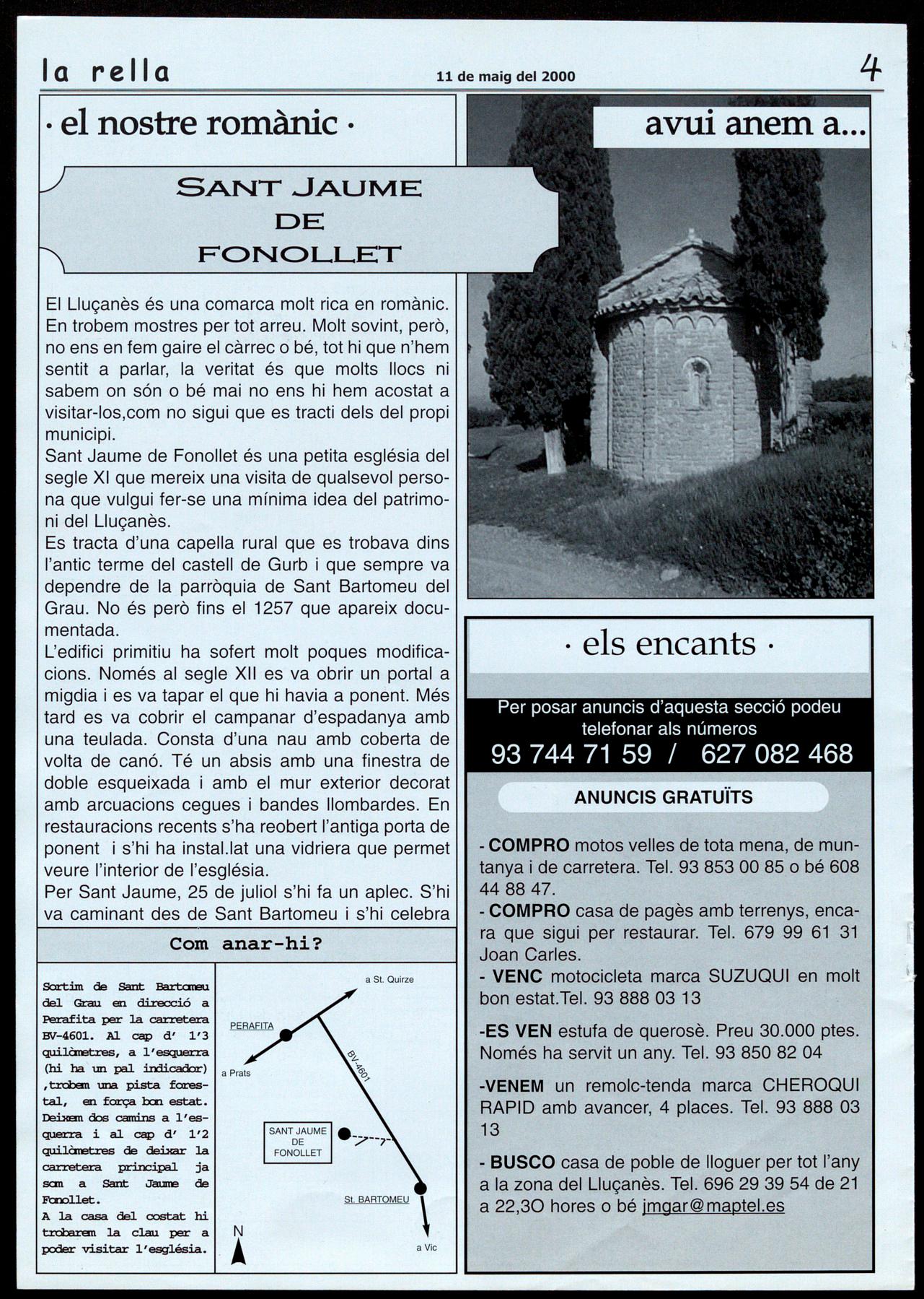 El Lluçanès és una comarca molt rica en romànic. En trobem mostres per tot arreu. Molt sovint, però, no ens en fem gaire el càrrec o bé, tot hi que n'hem sentit a parlar, la veritat és que molts llocs ni sabem on són o bé mai no ens hi hem acostat a visitar-Ios,com no sigui que es tracti dels del propi municipi.