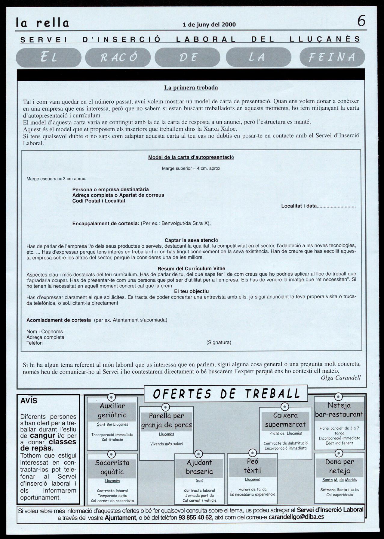 Tal i com vam quedar en el número passat, avui volem mostrar un model de carta de presentació. Quan ens volem donar a conèixer en una empresa que ens interessa, però que no sabem si estan buscant treballadors en aquests moments, ho fem mitjançant la carta d'autopresentació i currículum.