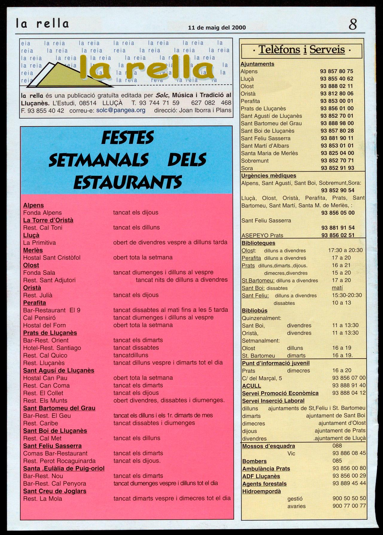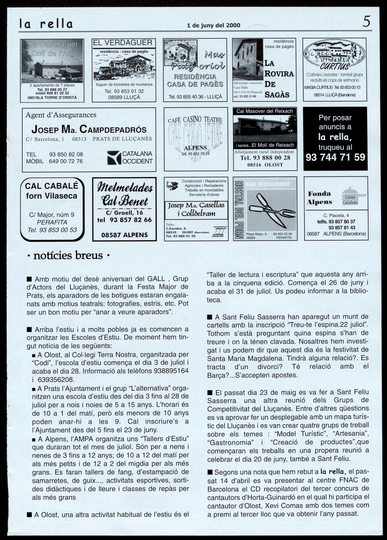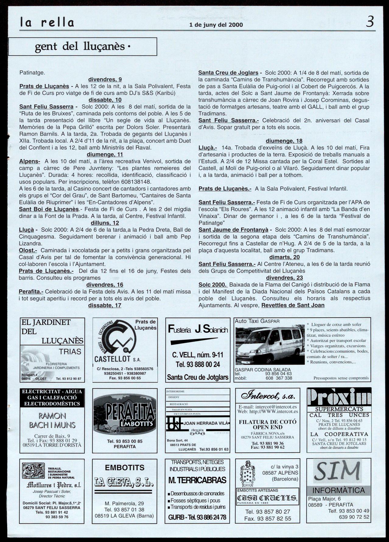 la rella és una publicació gratuïta editada per Solc, Música i Tradició al Lluçanès. L'Estudi, 08514 LLUÇÀ T. 93 744 71 59 627 082 468 F. 938554042 correu-e: solc@pangea.org direcció: Joan Ibarra i Plans