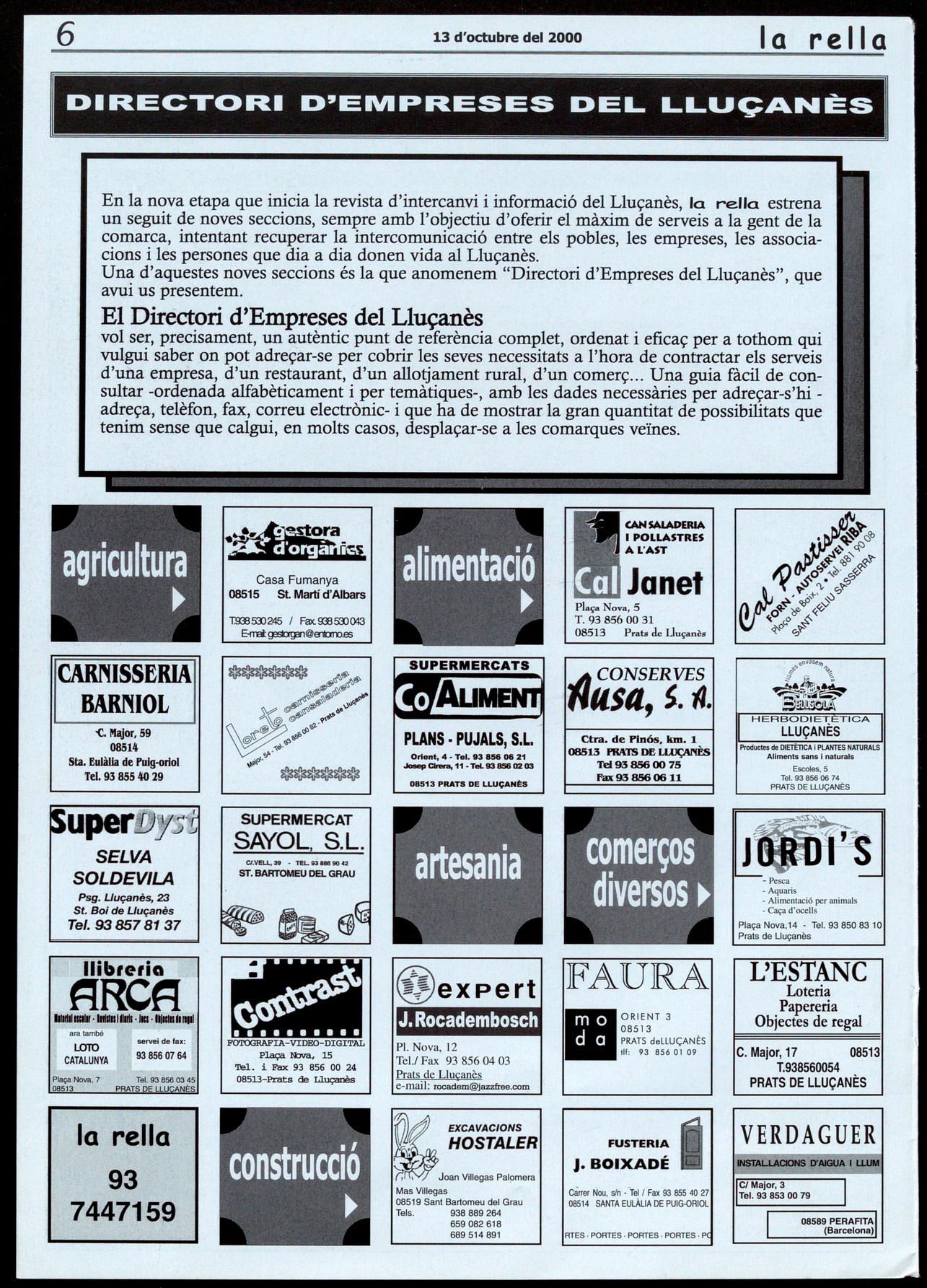 Lluçà, Olost, Oristà, Perafita, Prats, Sant Bartomeu, Sant Martí, Santa M. de Merlès, 93856 05 00 Sant Feliu Sasserra 93881 91 54