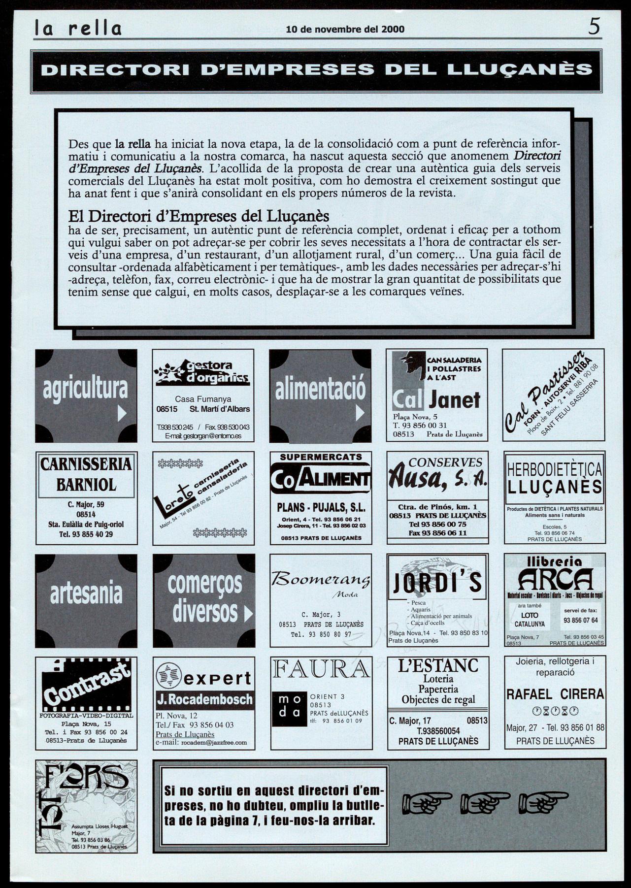Equip de redacció: Montse Rocadembosch, Glòria Borralleras, Teresa Parareda (fotografies), Pere Garet, Roser Reixach, Josep Salvans, Rosa M. Boixadé.