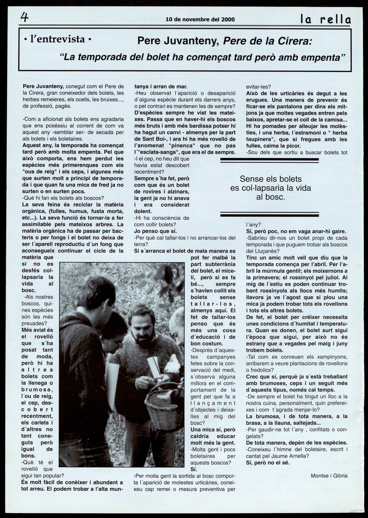 -Pere Juvanteny, bon coneixedor dels boscos del Lluçanès, ens parla de bolets en l'entrevista que publiquem en aquest número de la rella.