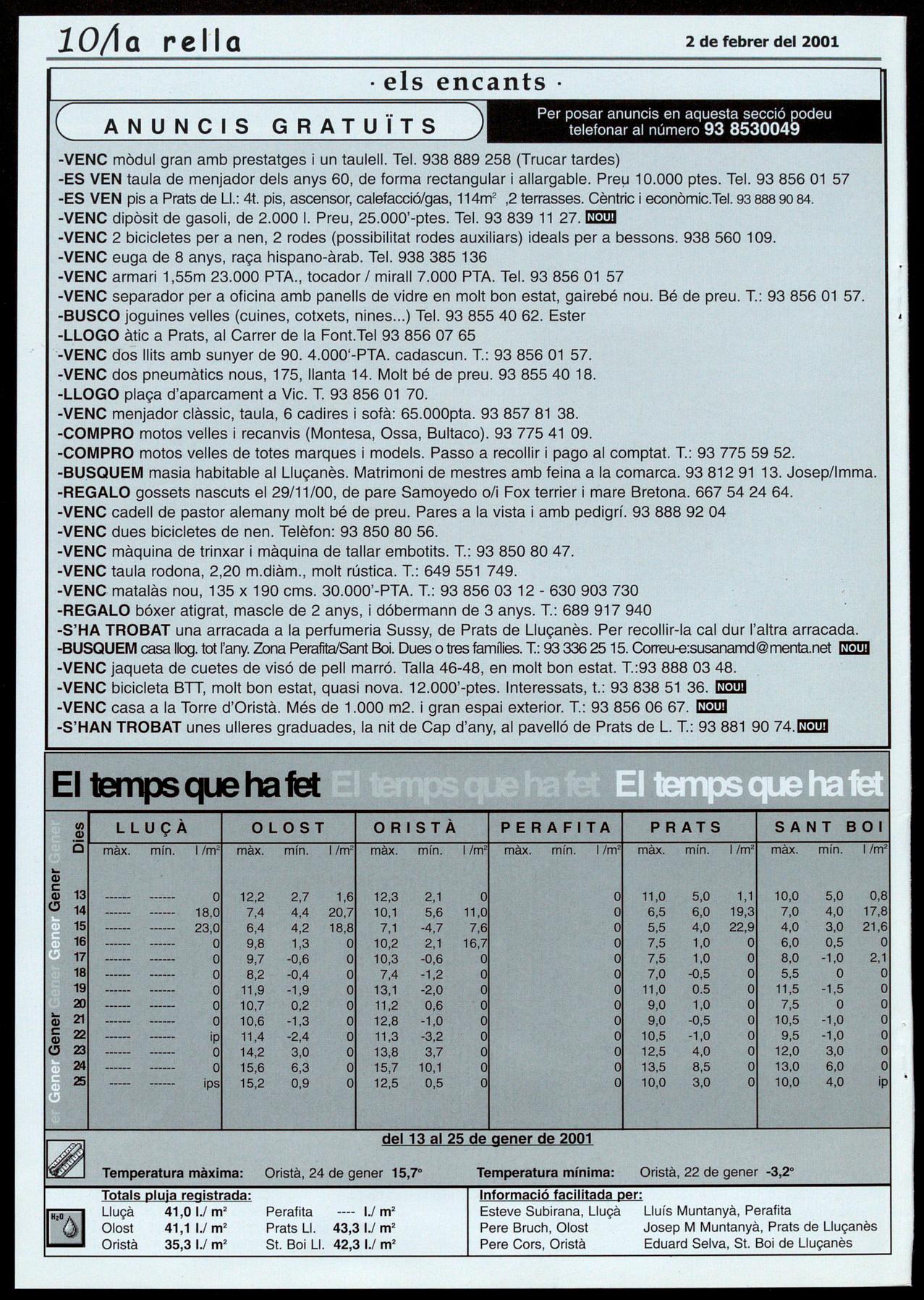 • Festes locals de Sant Boi de Lluçanès. En la rella número 18, corresponent al 5 de gener d'enguany, apareixia la relació de festes locals dels diferents pobles del Lluçanès per a l'any 2001. En referència al poble de Sant Boi de Lluçanès, la informació no es concretava per manca de dades. L'ajuntament ha fet saber que les dates establertes com a festes locals per a l'any 2001 són el 4 de juny el 28 de setembre.