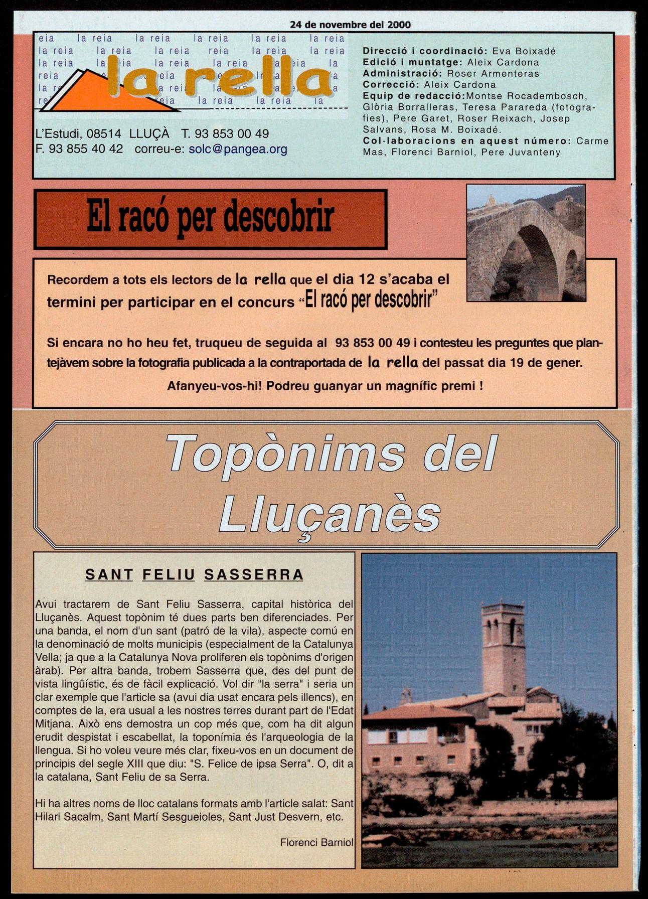 Equip de redacció:Montse Rocadembosch, Glòria Borralleras, Teresa Parareda (fotografies), Pere Garet, Roser Reixach, Josep Salvans, Rosa M. Boixadé.