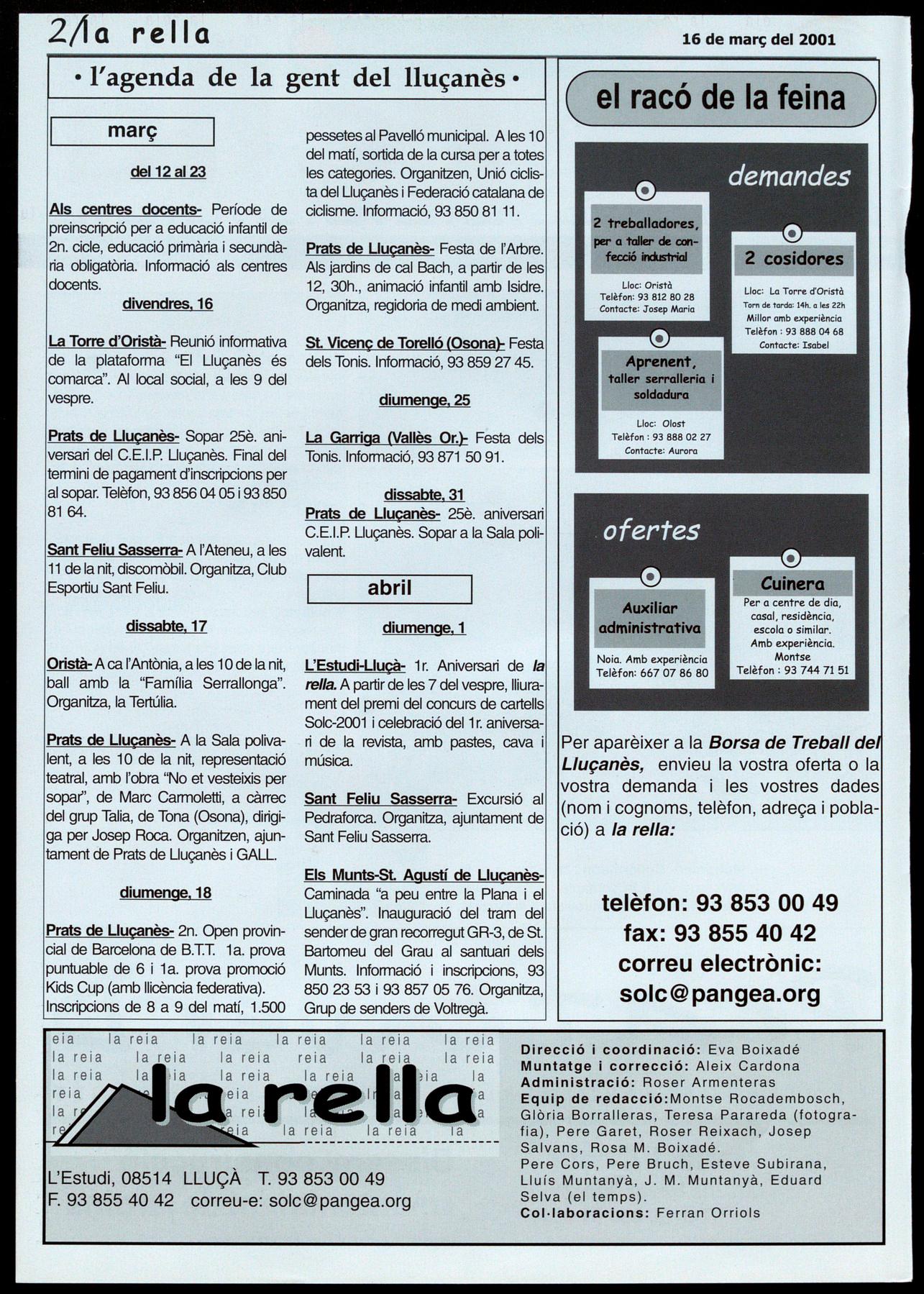 Administració: Roser Armenteras Equip de redacció:Montse Rocadembosch, Glòria Borralleras, Teresa Parareda (fotografia), Pere Garet, Roser Reixach, Josep Salvans, Rosa M. Boixadé.