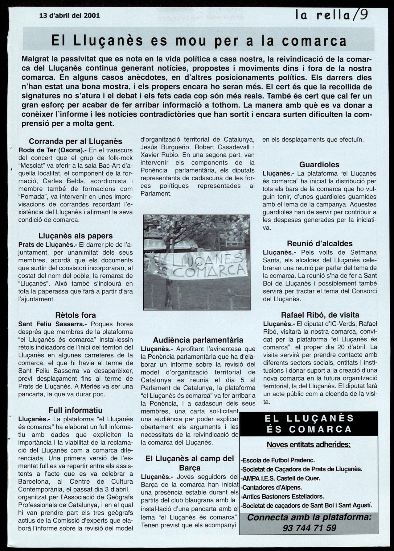 • La revista Descobrir dedicada al Lluçanès. El número corresponent al mes de maig de la revista Descobrir, que edita Edicions 62, anirà dedicat al Lluçanès enm el seu tema central. Es tracta, sens dubte, d'una feliç coincidència en un moment en què la nostra comarca es mou per ser reconeguda en el futur mapa de Catalunya. La presentació del número es farà a primers de maig.