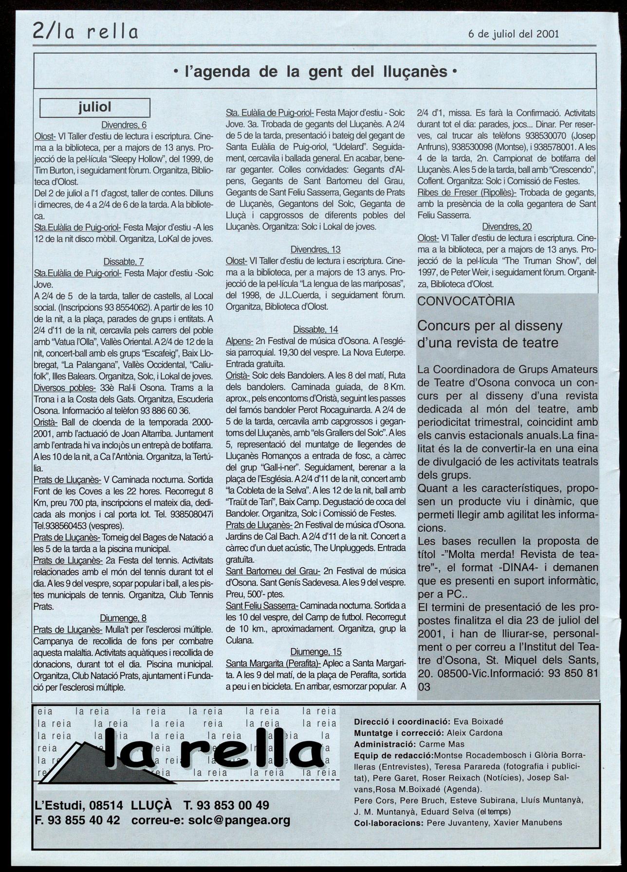 Equip de redacció:Montse Rocadembosch i Glòria Borralleras (Entrevistes), Teresa Parareda (fotografia i publicitat), Pere Garet, Roser Reixach (Notícies), Josep Salvans, Rosa M.Boixadé (Agenda).