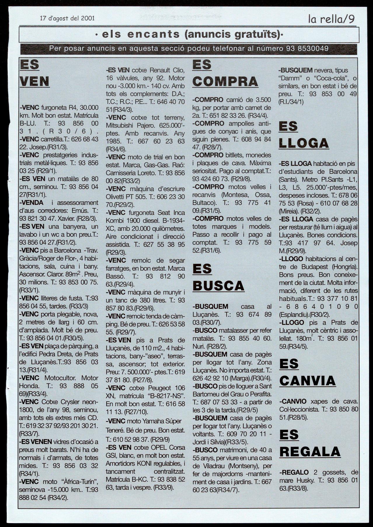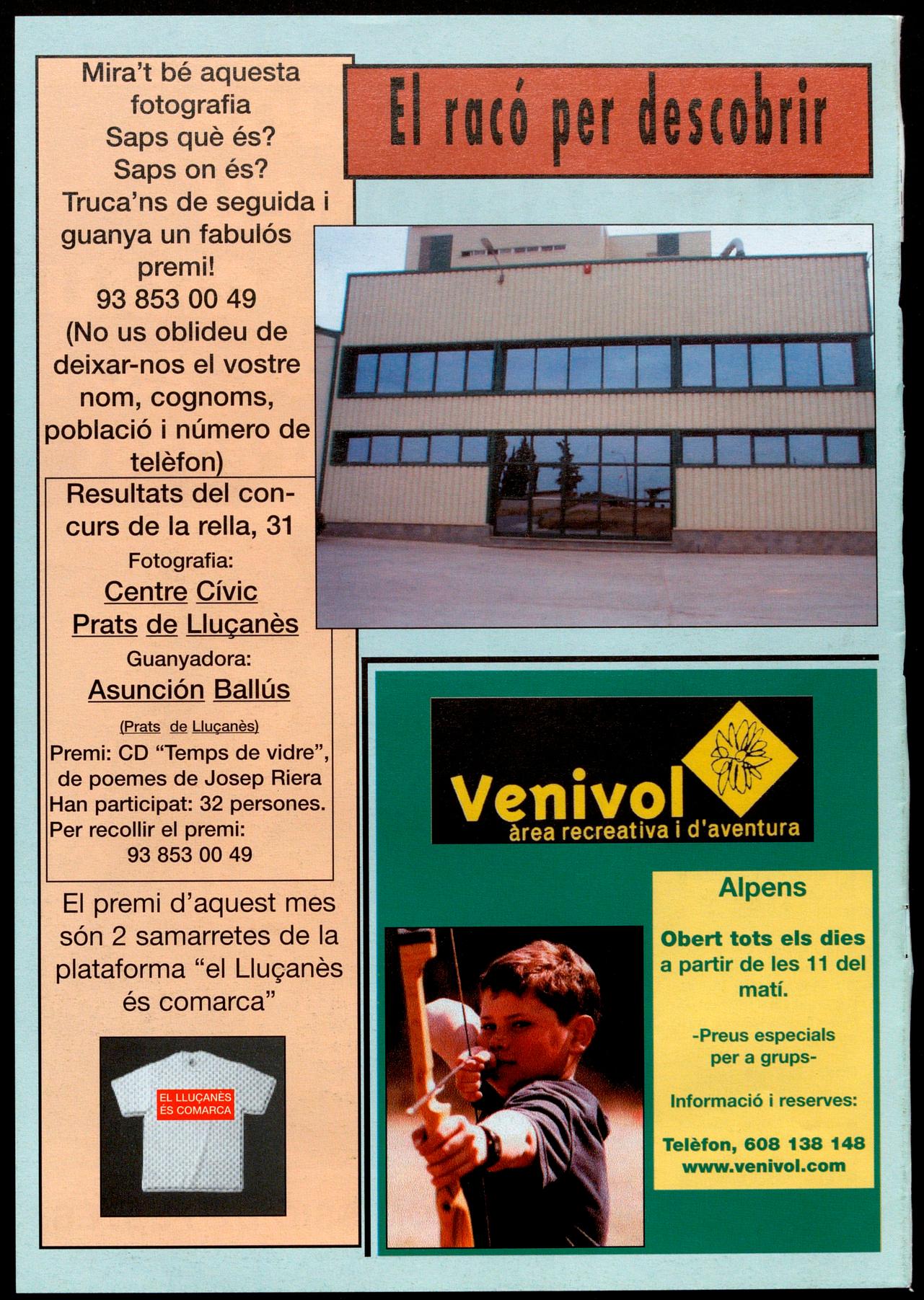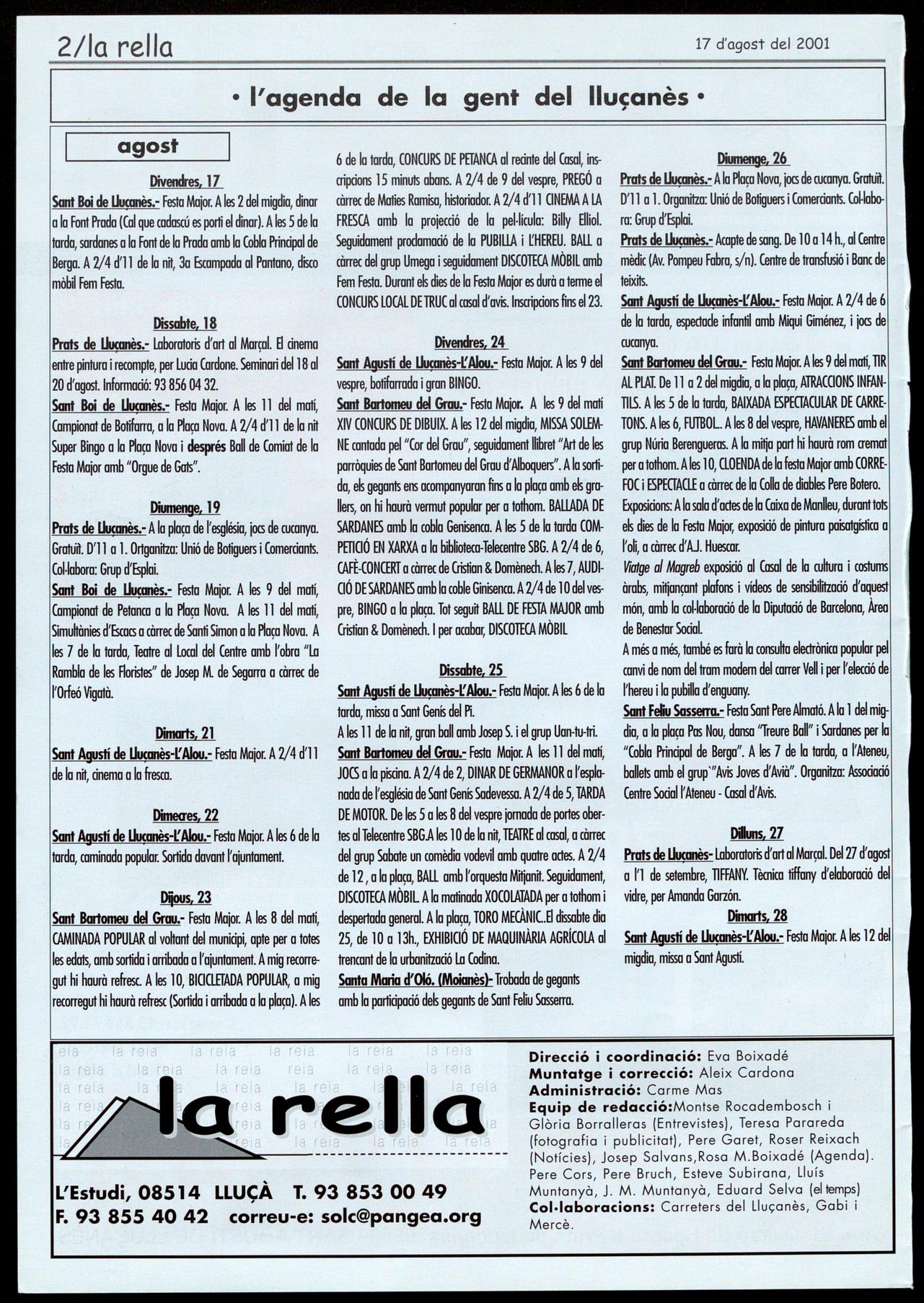 Administració: Carme Mas Equip de redacció:Montse Rocadembosch i Glòria Borralleras (Entrevistes), Teresa Parareda (fotografia publicitat), Pere Garet, Roser Reixach (Notícies), Josep Salvans,Rosa M.Boixadé (Agenda). Pere Cors, Pere Bruch, Esteve Subirana, Lluís Muntanyà, J. M. Muntanyà, Eduard Selva (el temps) Col.laboracions: Carreters del Lluçanès, Gabi Mercè.