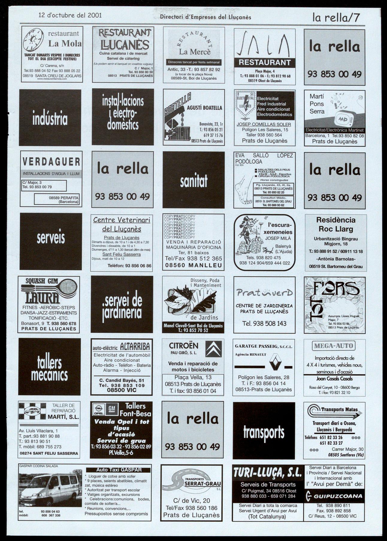 sobre els materials, mides i moviments que ESTUDI PER IMPULSAR EL DESENVOLUPA- enlie en un animal d'aquesttipus. la despesa MENT DEL LLUÇANÈS. "El Lluçanès. total de la construcció de Pròssia és de prop de Possibilitats de generació d'ocupa- 400.000'-ptes, de les quals l'associació Solc n'haurà pagades 150.000. El ratpenat, de 2,70 metres d'alça ció a partir dels nous filons ambienda, i amb unes ales considerables, va ser la novetat més esperada pel nombrós públic que es va concentrar tals" és el títol de l'estudi presentat dissabte al vespre per presenciar els ja coneguts balls de nans drac i el ball dels carlins. fa uns dies a Sant Bartomeu del Grau elaborat pel CRESC (Centre de Recerca Econòmica i Social de Catalunya) a partir d'una sol.licitud feta per l'organisme autònom El Grau. En aquest informe es proposen unes activitats productives anomenades filons, com la creació d'un .centre de prestacions per a la gent gran, la creació d'empreses per a la rehabilitació d'edificis amb qualitat ambiental la creació d'una escola de pastors de Catalunya. A part d'aquestes propostes, l'estudi analitza el tipus de població del Lluçanès les seves activitats econòmiques actuals.