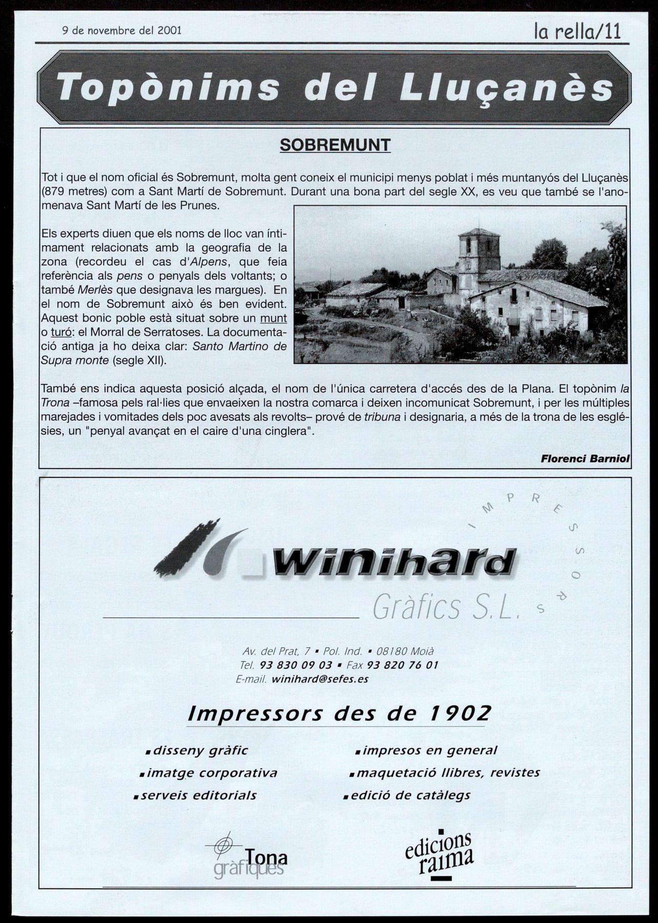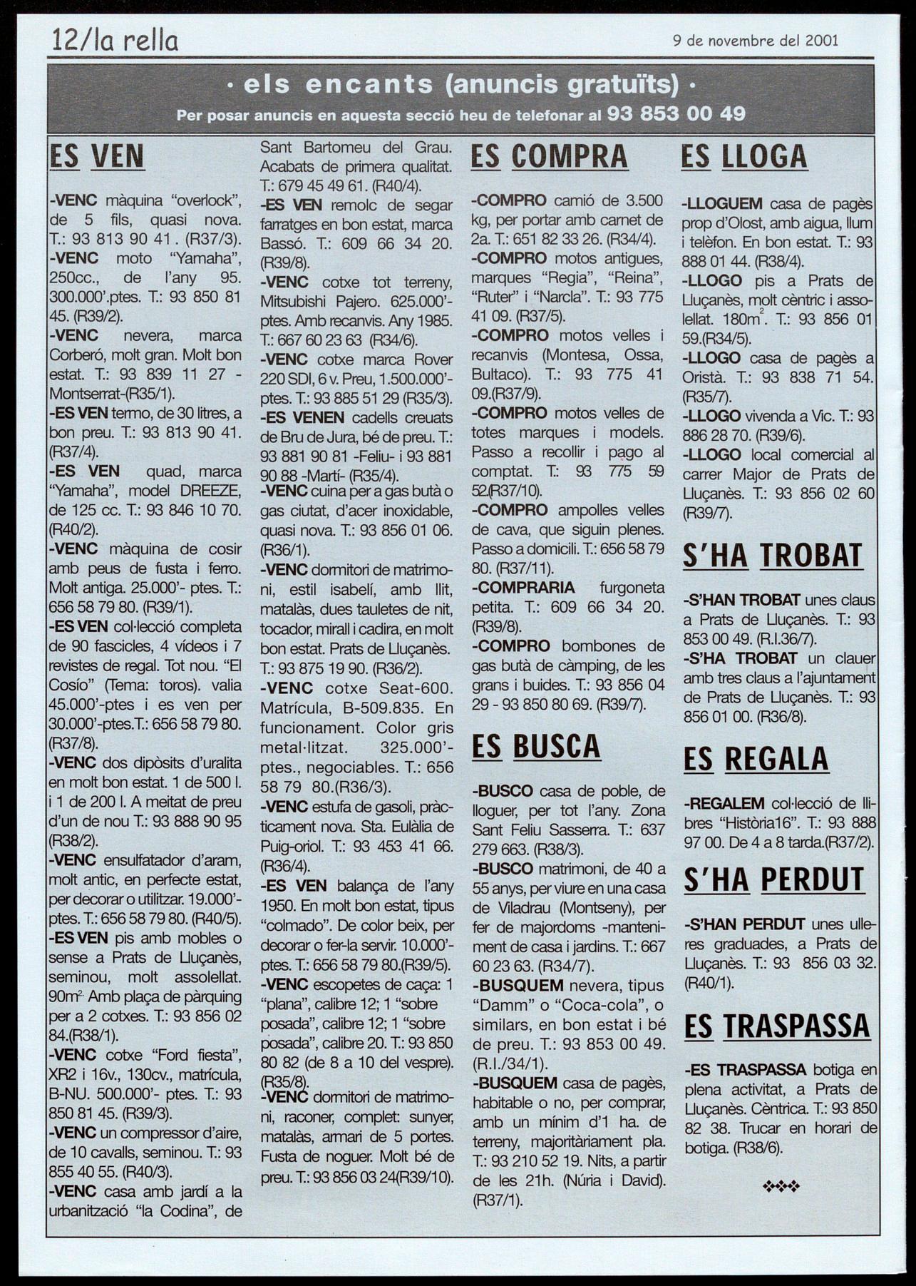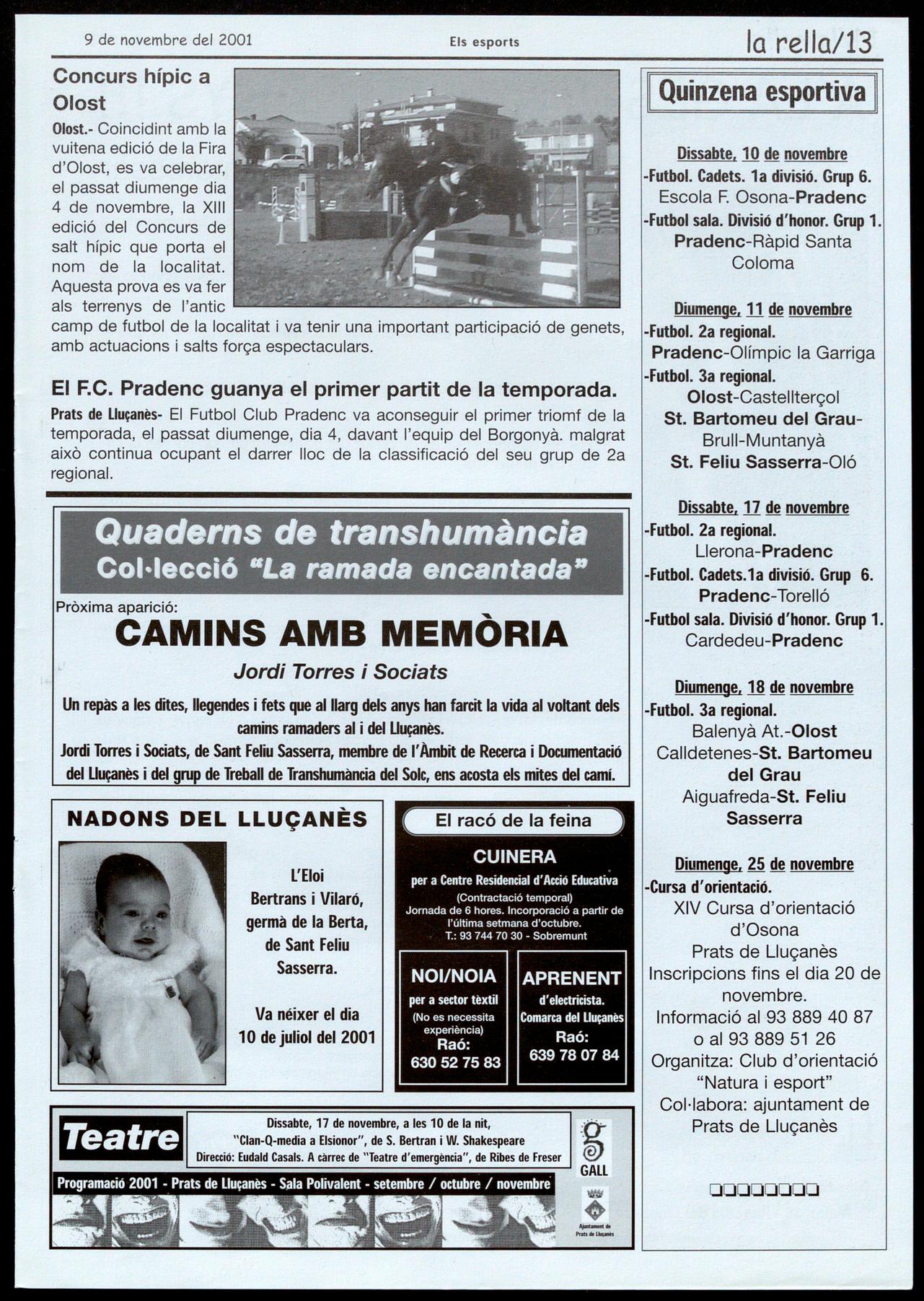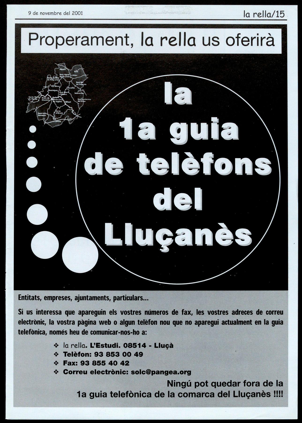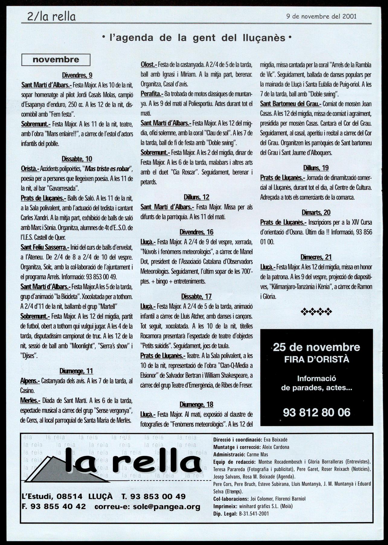 EL LLUÇANÈS BEN PRRESENT A PERPINVA. Una representació de gent del Lluçanès va ser present als actes de cloenda del Correllengua 2001 a la ciutat nordcatalana de Perpinyà. L'acte, que va aplegar més de 4.000 persones vingudes de les comarques de la Catalunya Nord de la resta dels Països Catalans, coincidint amb la diada en
