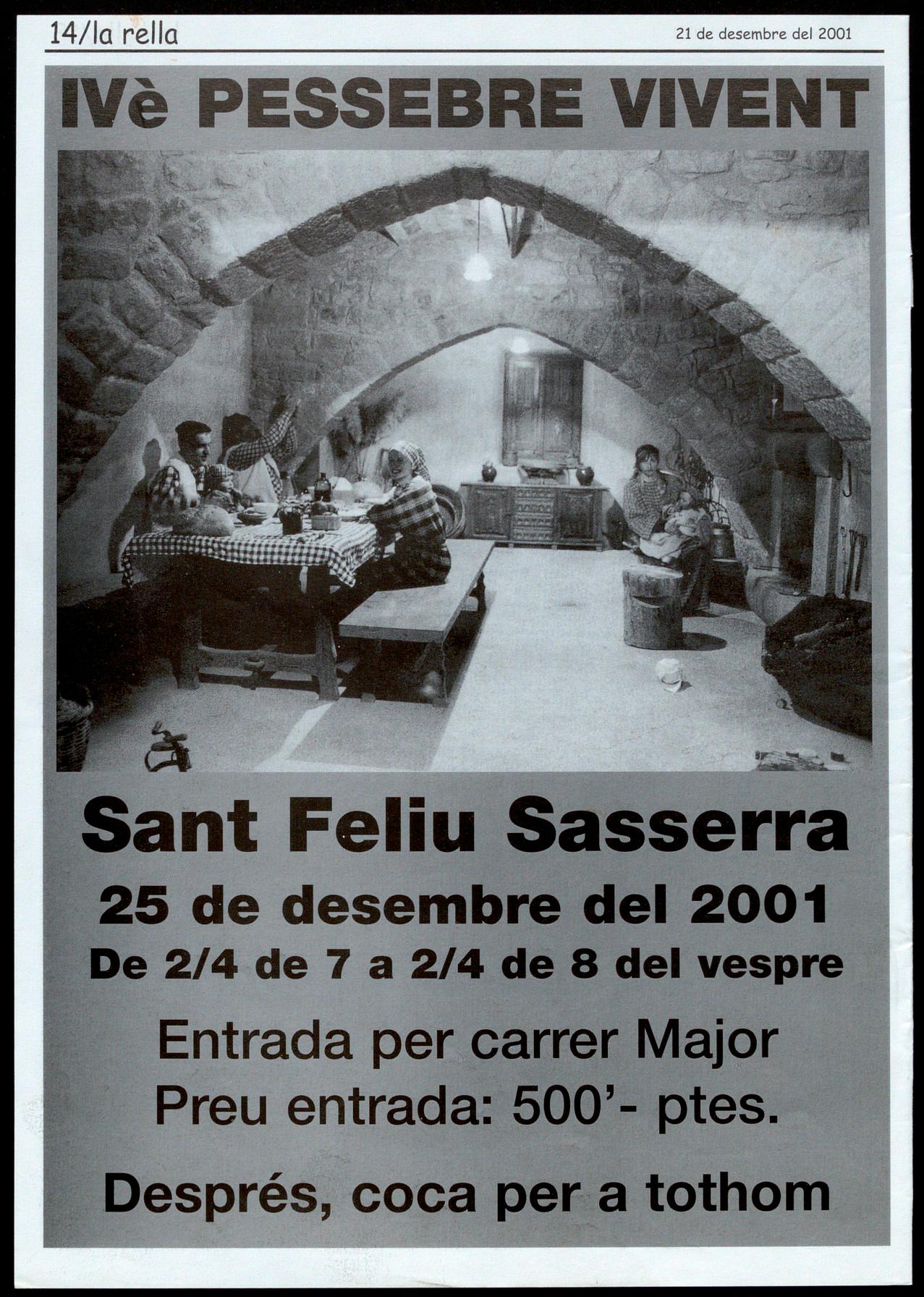 Pera6ta.- Concert de Nadal. Ales 8 del vespre, a l'església, a càrrec de la coral "Laroc", deTorelló (Osona). Sant Felu Sasserra.- Pessebre vivent. De 2/4 de 7 a 2/4 de 8 del vespre. Organitza, Agrupació teatral "Pere Vergés".