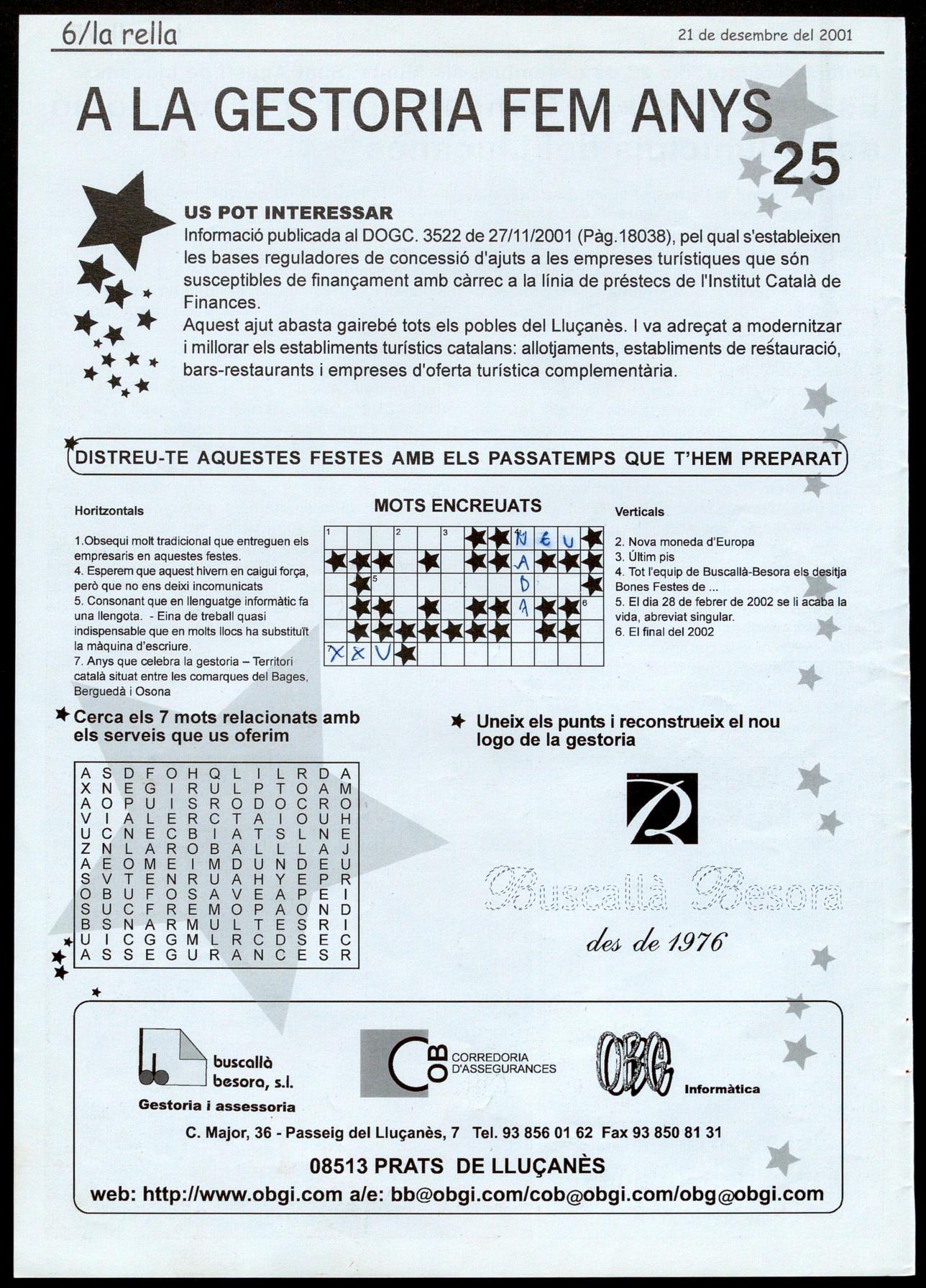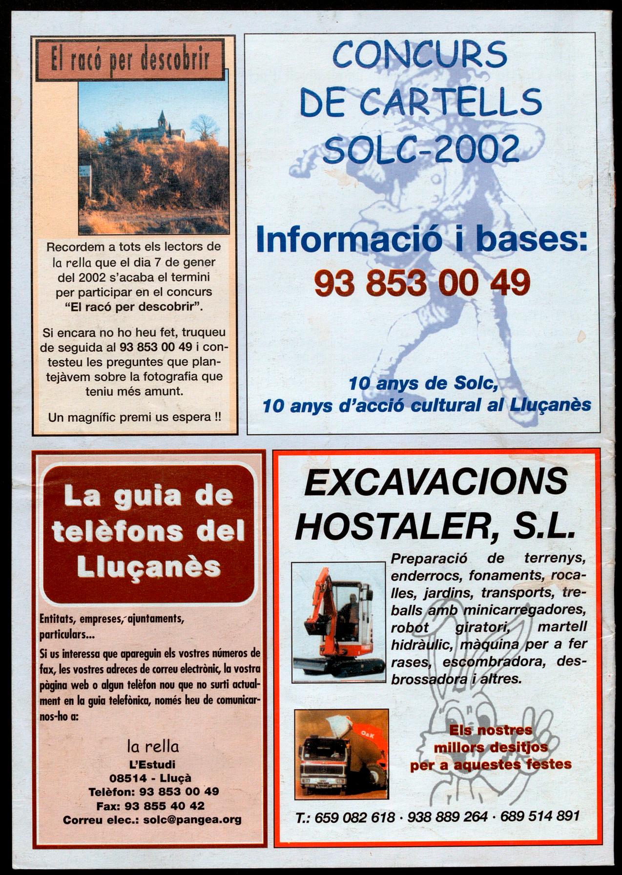 Recordem a tots els .Iectors de la rella que el dia 7 de gener del 2002 s'acaba el termini per participar en el concurs "El racó per descobrir".