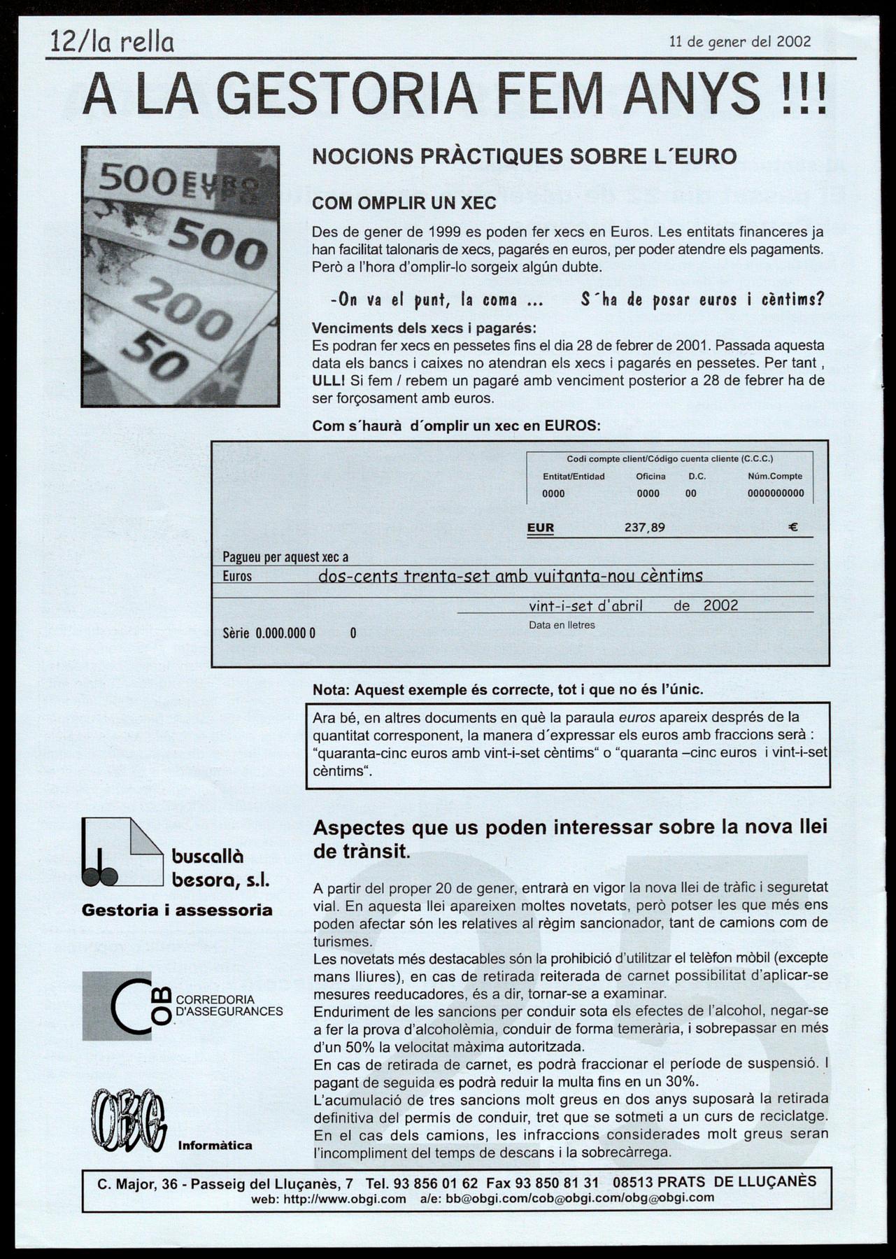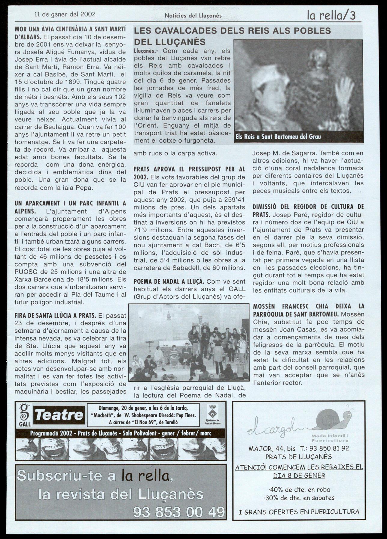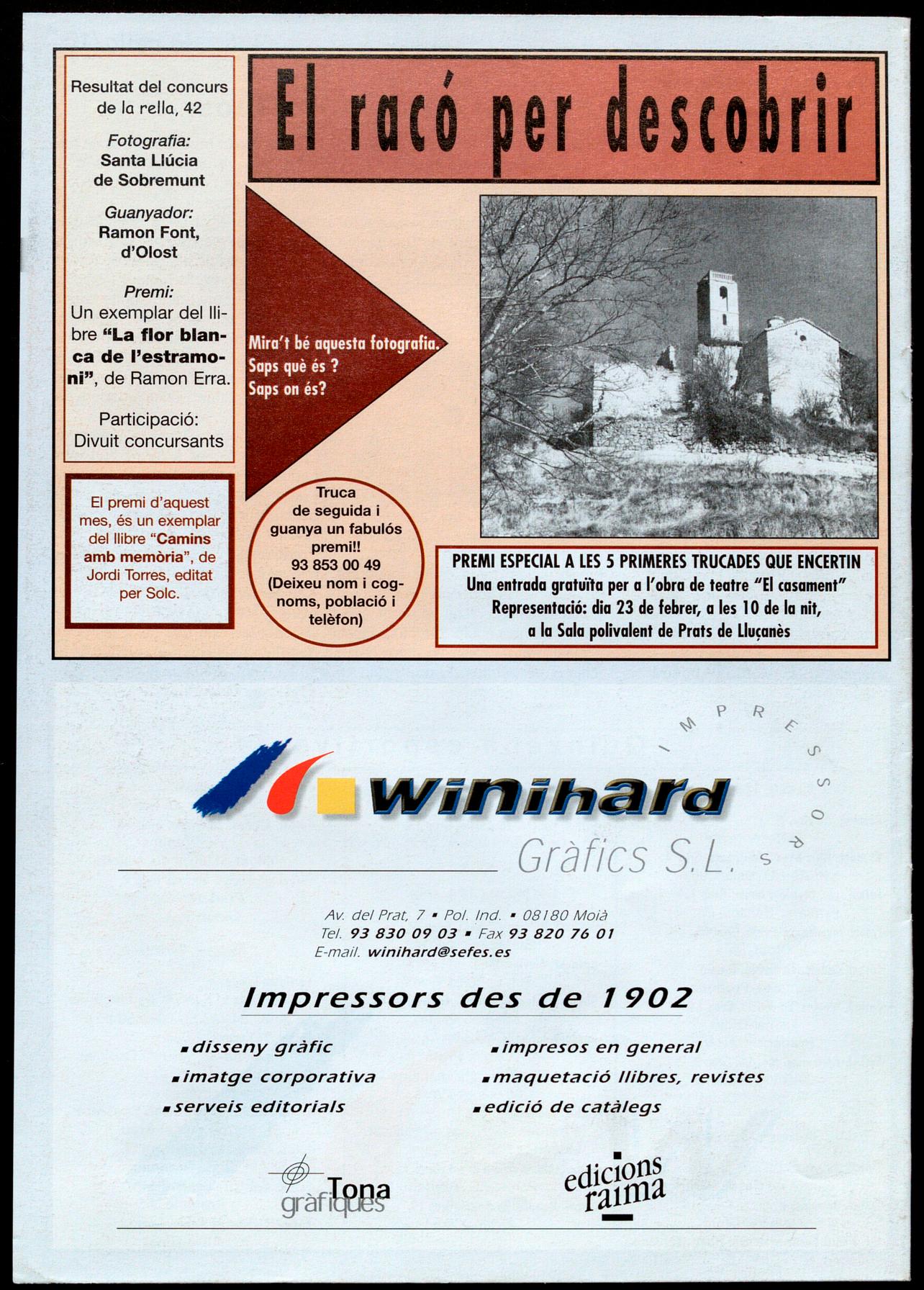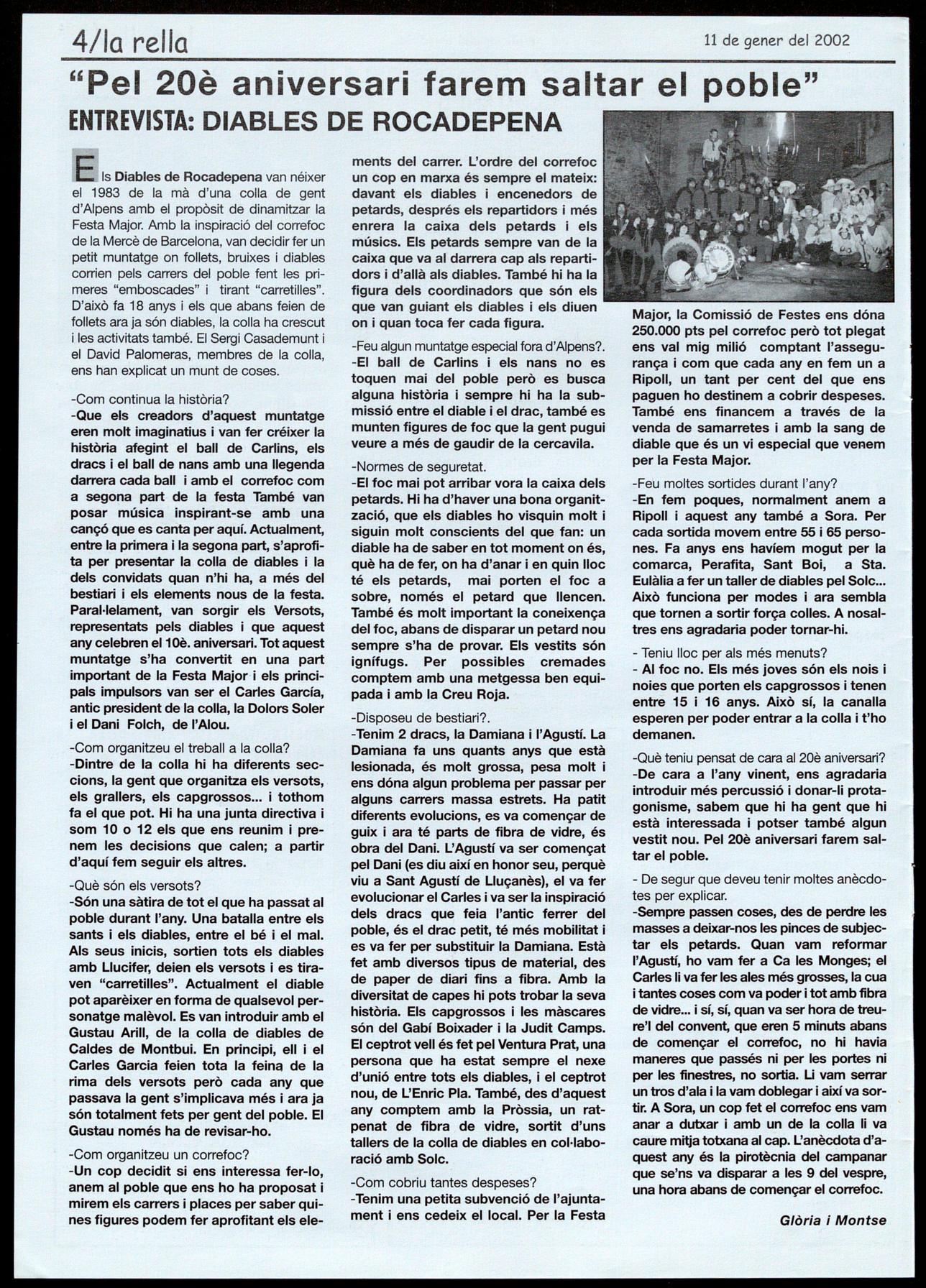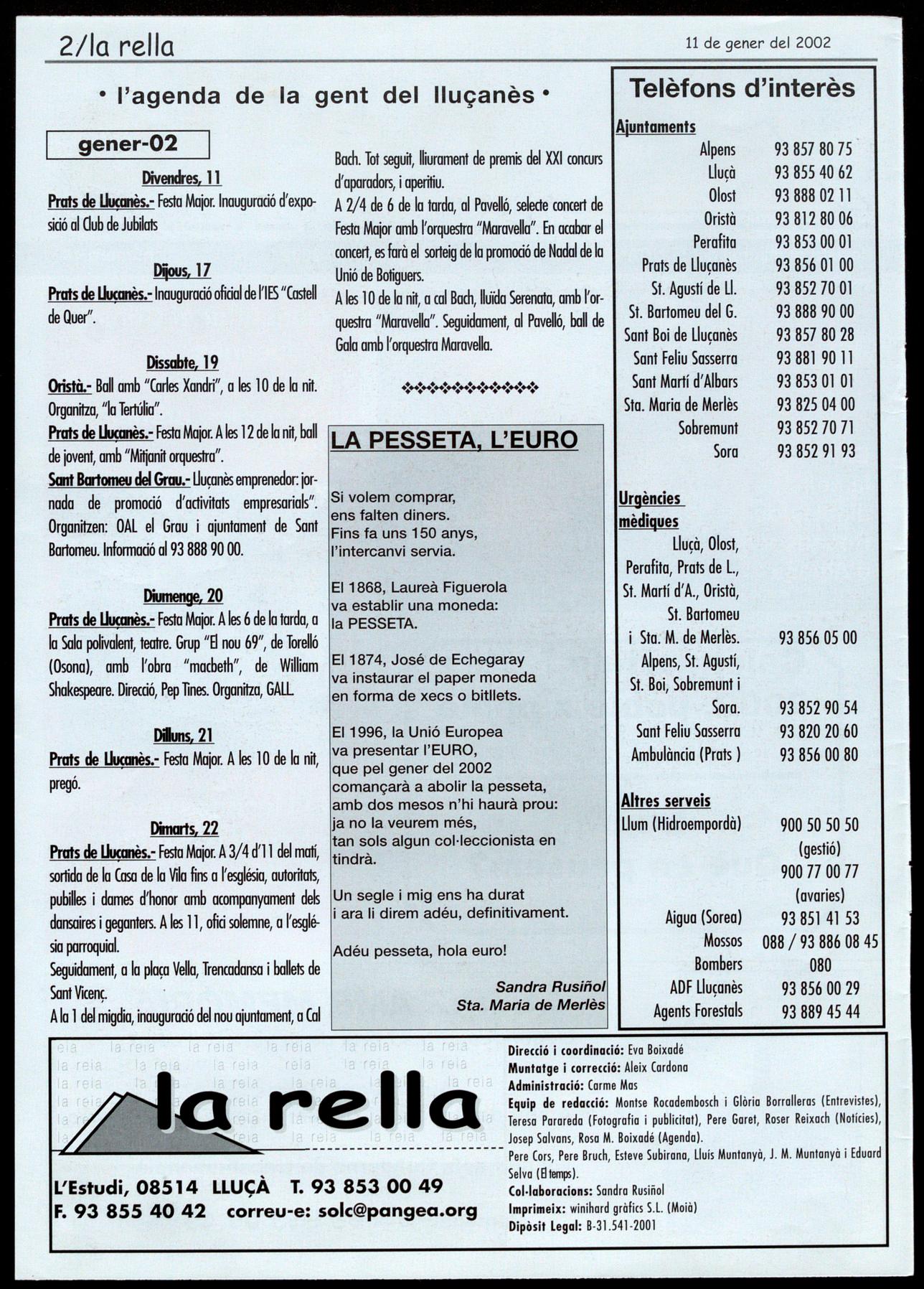 Equip de redacció: Montse Rocadembosch i Glòrio Borralleras (Entrevistes), Teresa Parareda (Fotografio i publicitat), Pere Goret, Roser Reixach (Notícies),