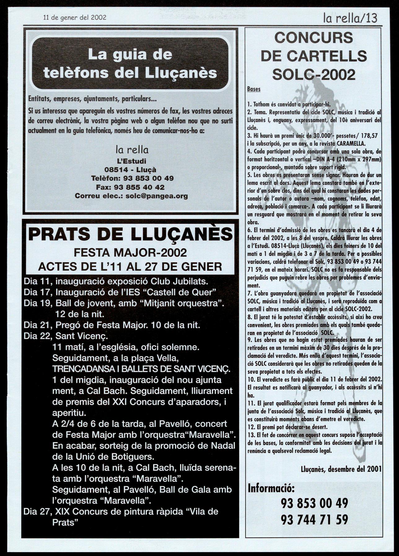 7. L'obra gua"y�d�r quedarà en propietât de I'associació SOLC, músicá i tradició allluçanès, i serà reproduïda com a cartell i altres nlater�ls eHitats p�r al cicle SOLC-2002.