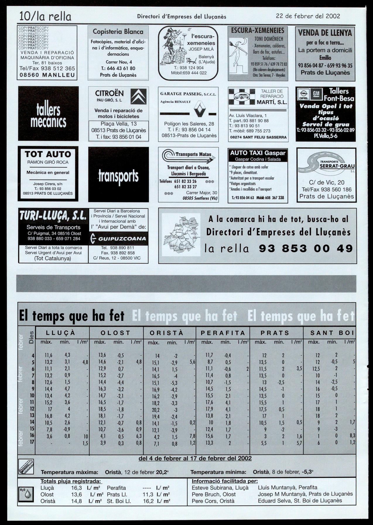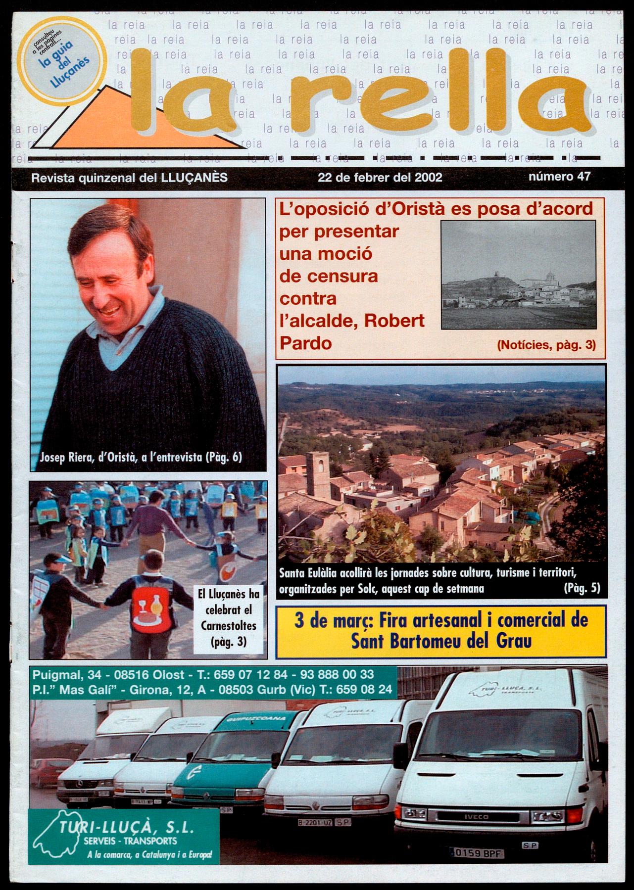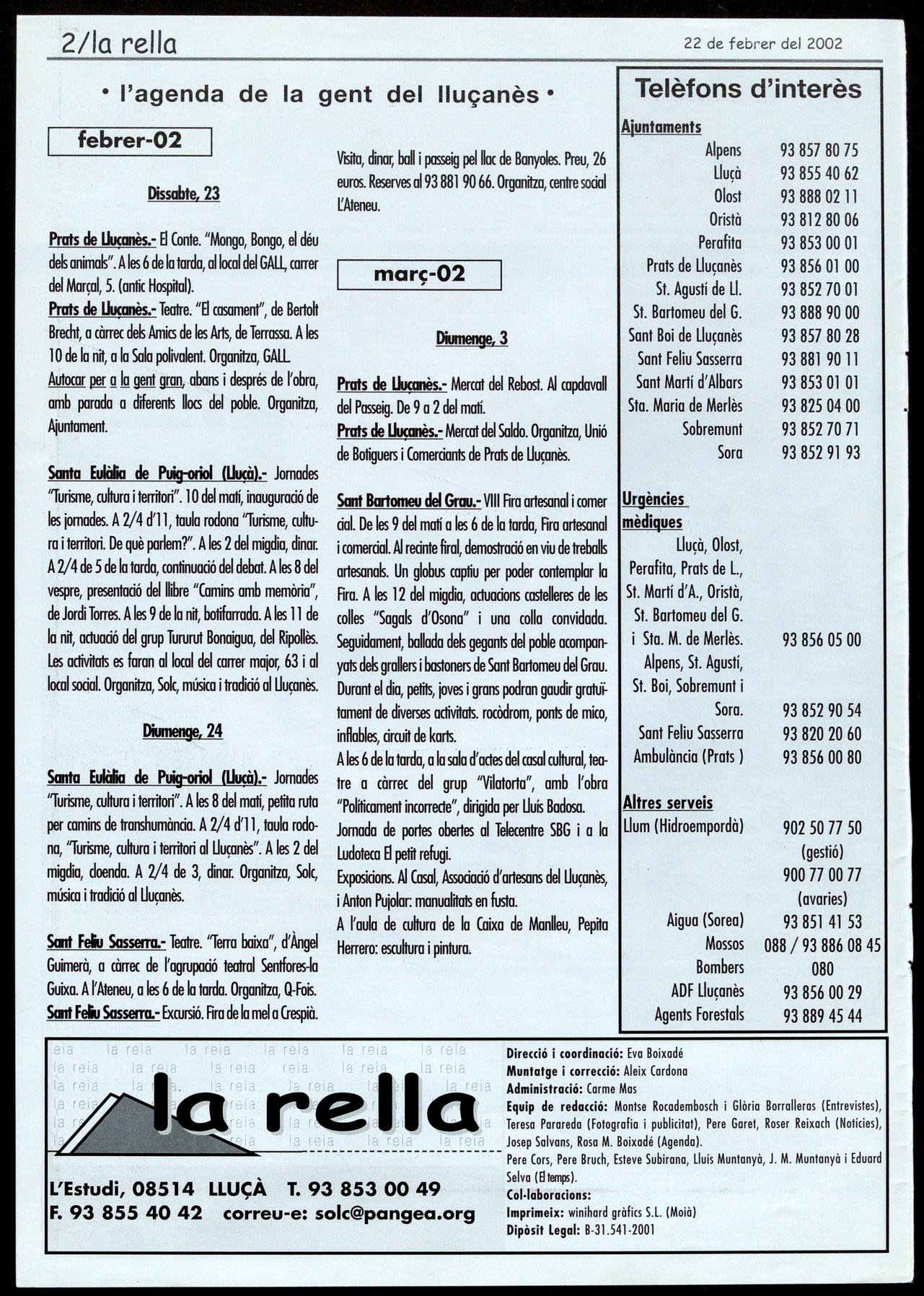 trimestral que editen conjuntament totes les parròquies del Lluçanès. En aquest número, corresponent a l'hivern del 2002, hi figura com a reportatge centrall'evolució de la població de l'arxiprestat del Lluçanès al s. XX, es fa una reflexió sobre la disminució de capellans en actiu les conseqüències que això pot suposar en el futur. A part, com és habitual hi ha unes notes breus amb les notícies més destacades de les diferents parròquies.R.R.