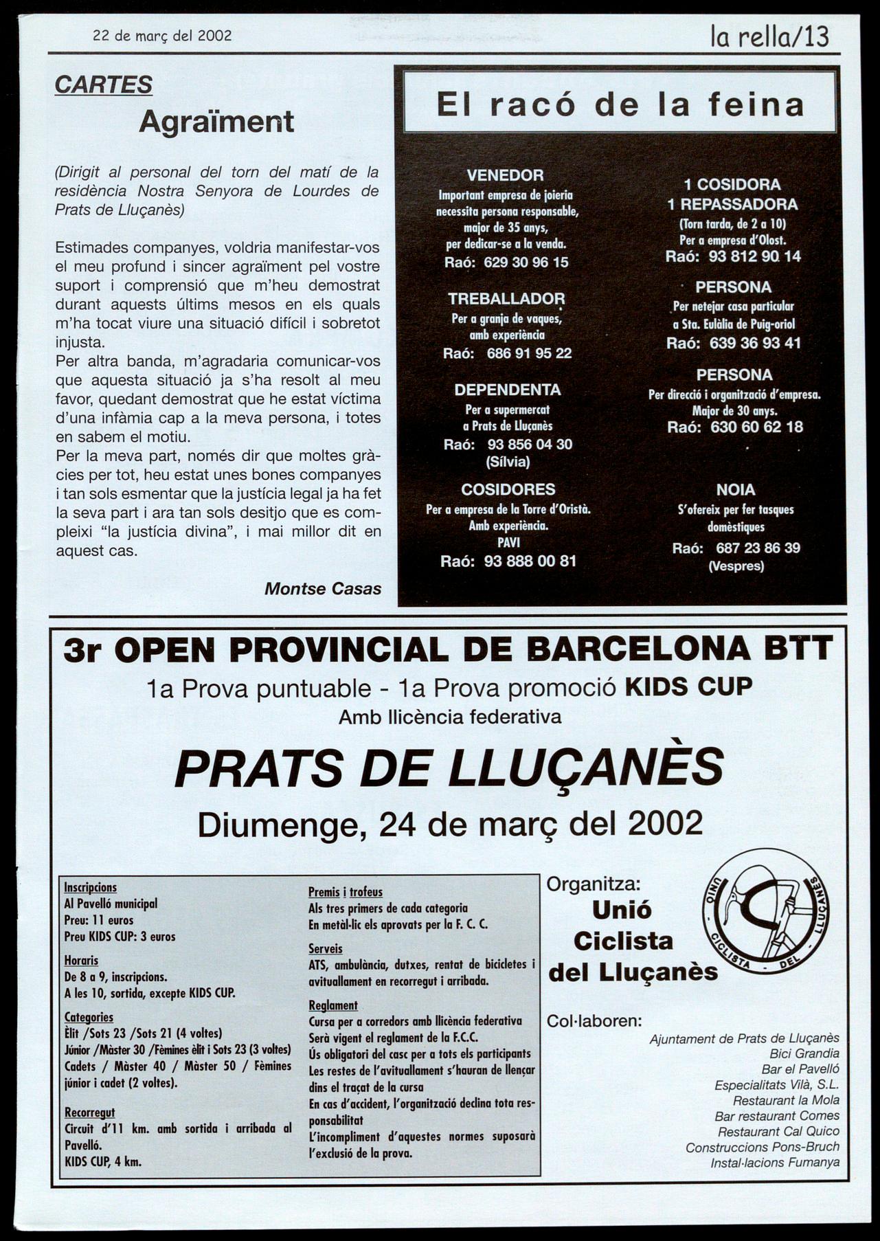Pàgines extres, ;..\ "balanç de 2 anys d'informació al Lluçanès No te la perdis!