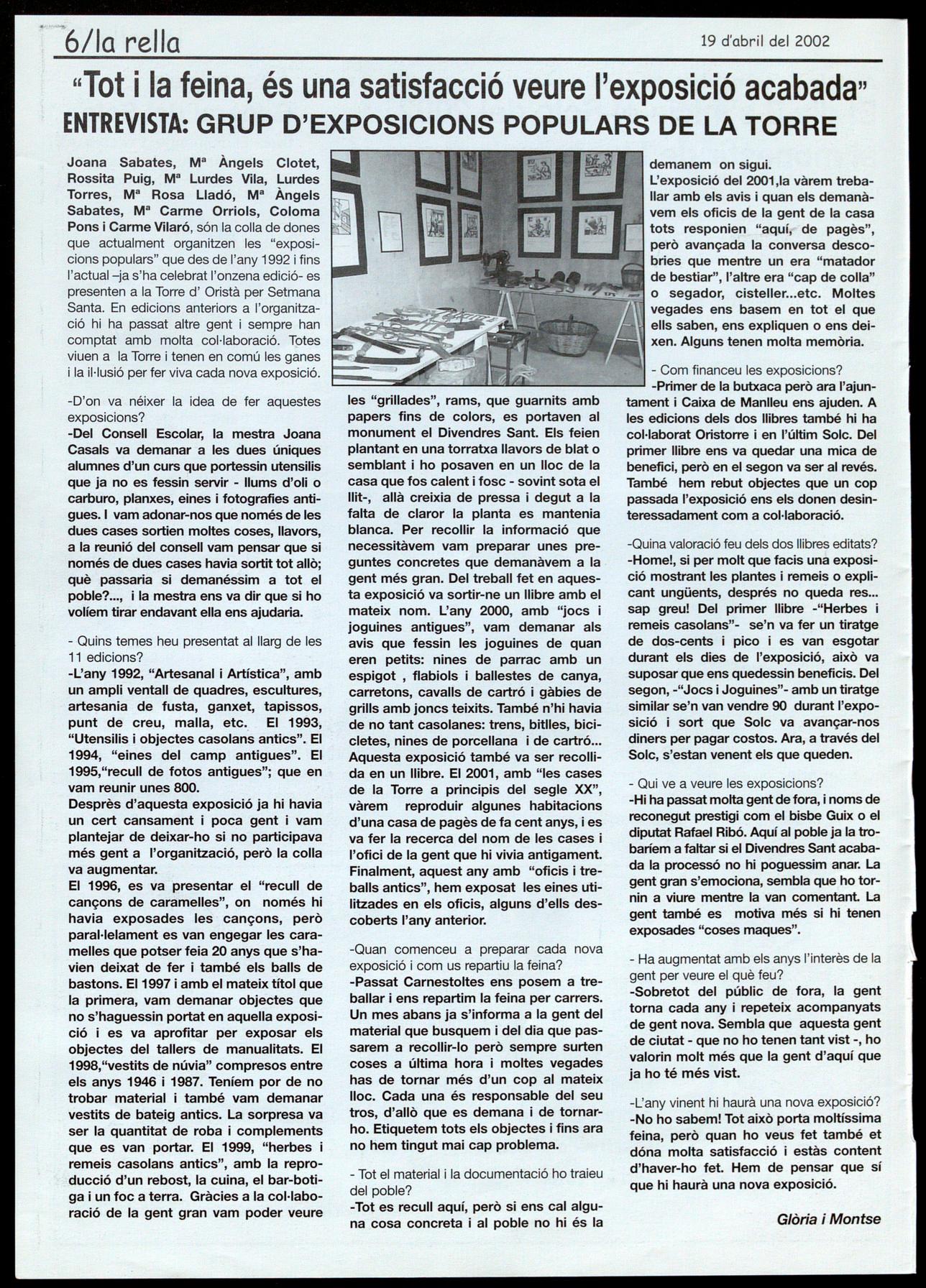 Equip de redacció: Montse Rocadembosch i Glòria Borralleras (Entrevistes),