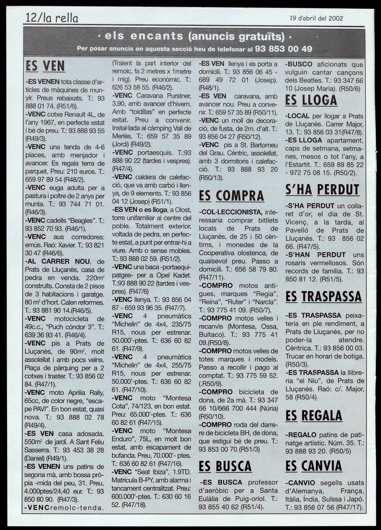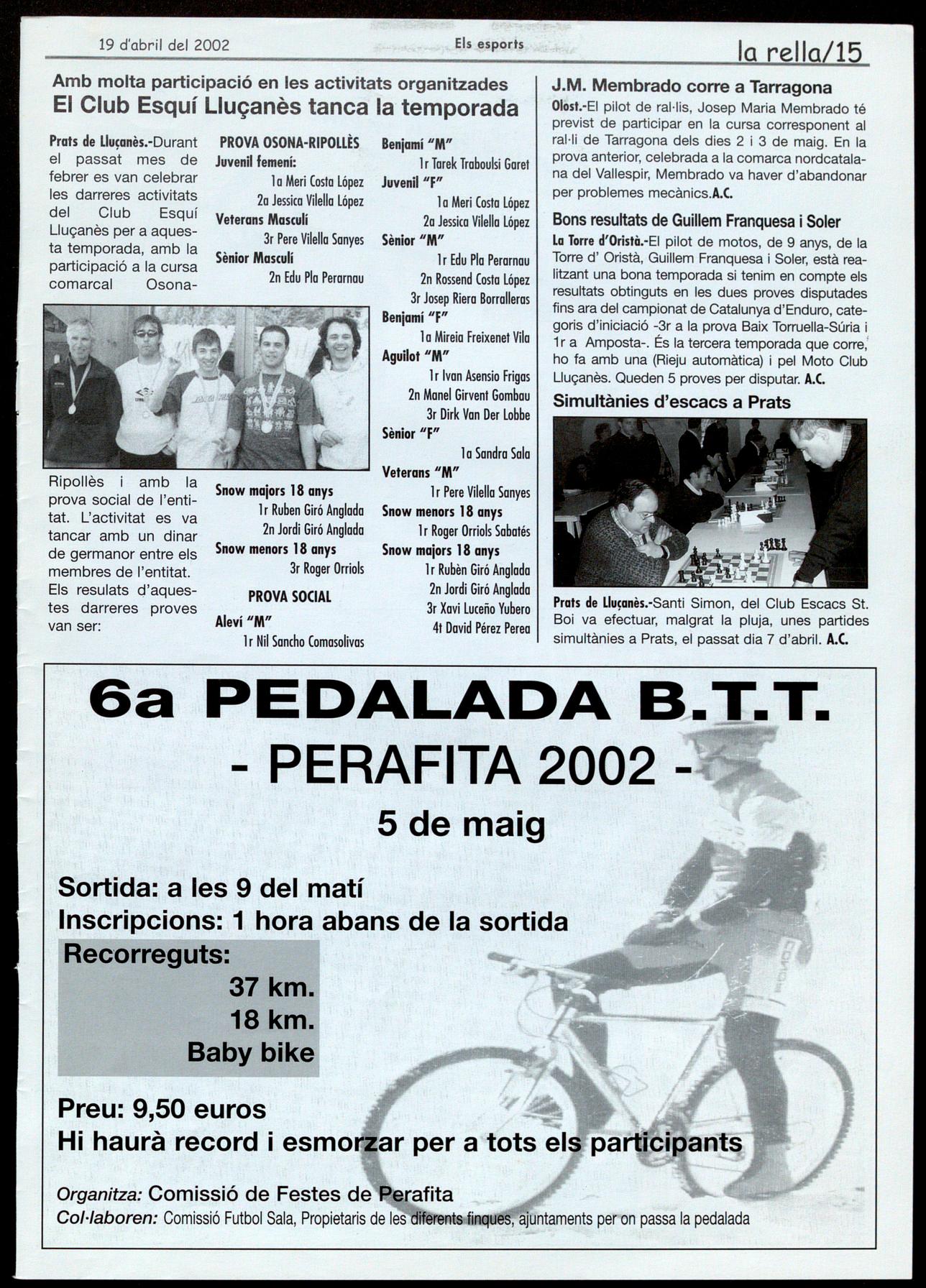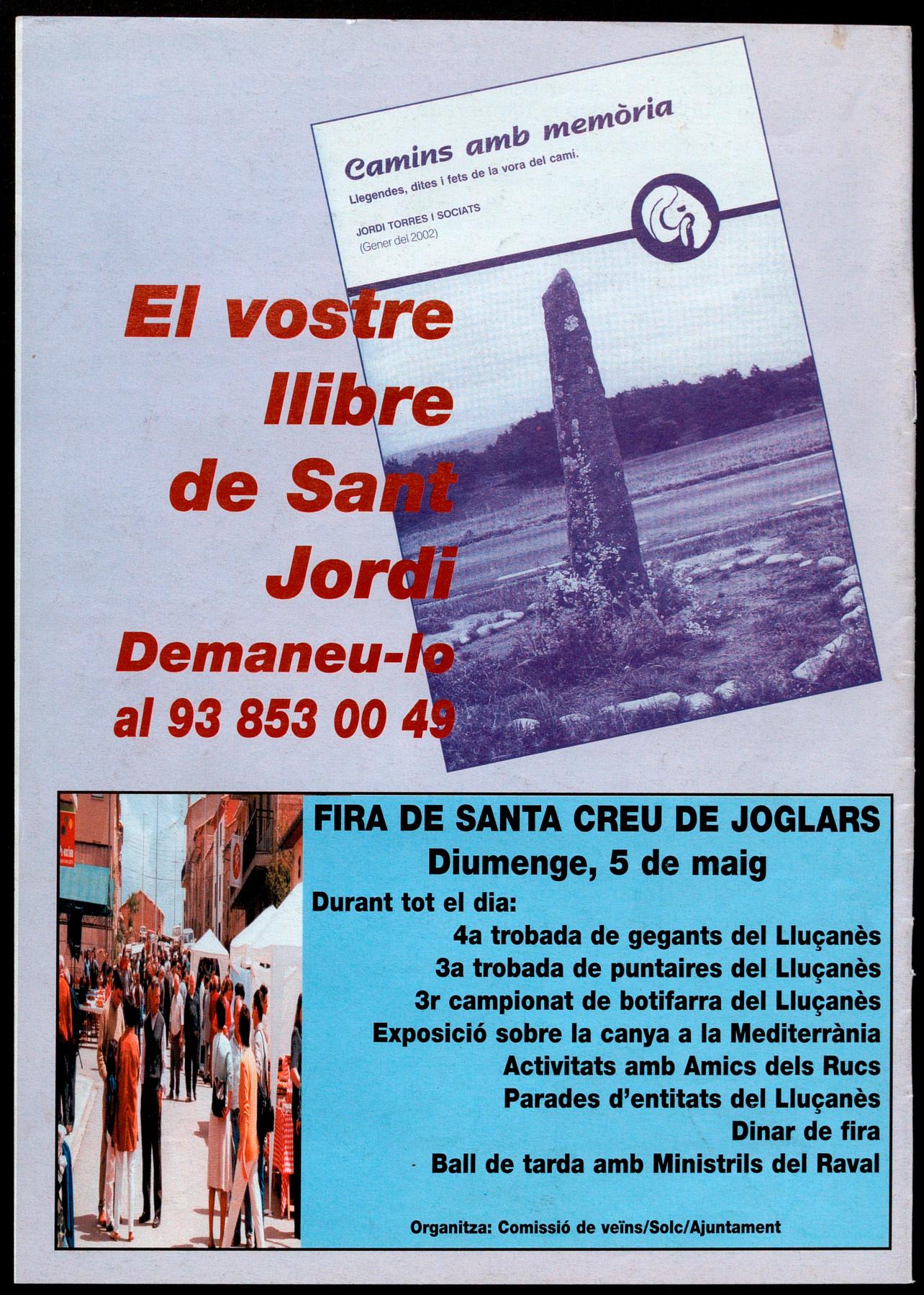 "Vicos", es va fer el lliurament del premi del concurs de cartells Solc-2002. La guanyadora, Imma Boixadé, de Santa Eulàlia de Puig-oriol, va recollir el xec de 180,30 euros un exemplar del llibre "Camins amb memòria", editat per l'Àmbit de Recerca i Documentació del Lluçanès i del qual és autor Jordi Torres, de Sant Feliu Sasserra.