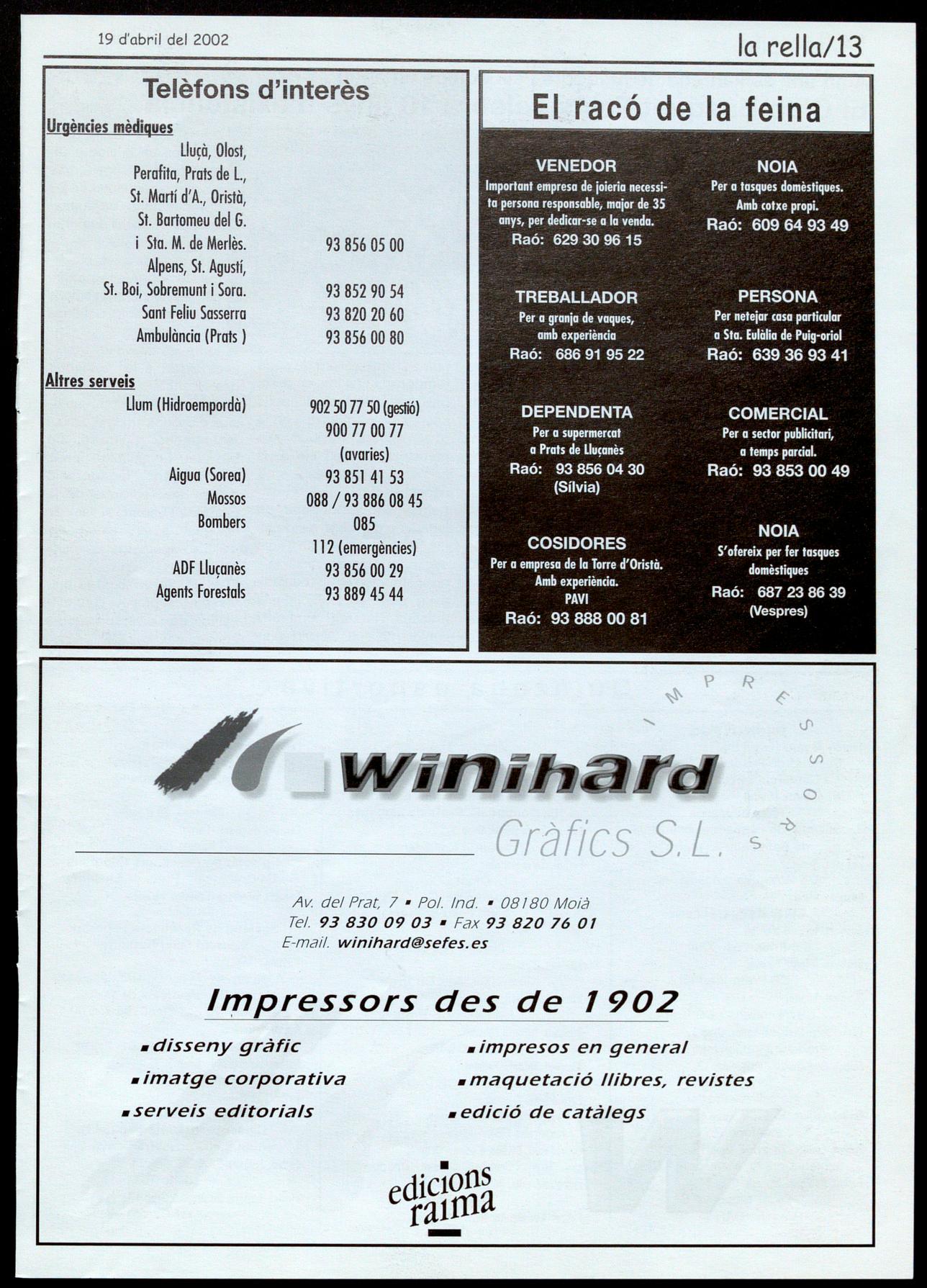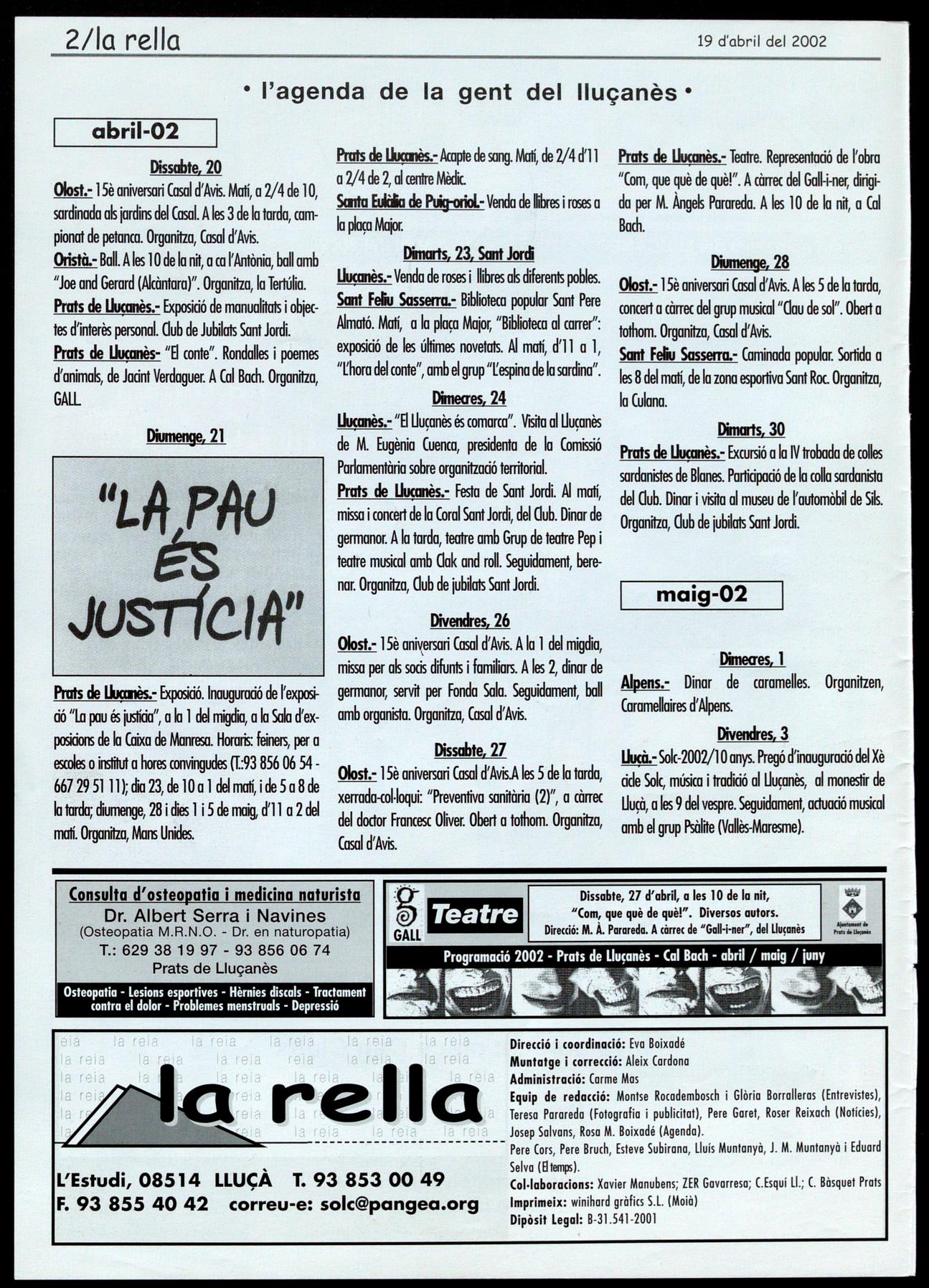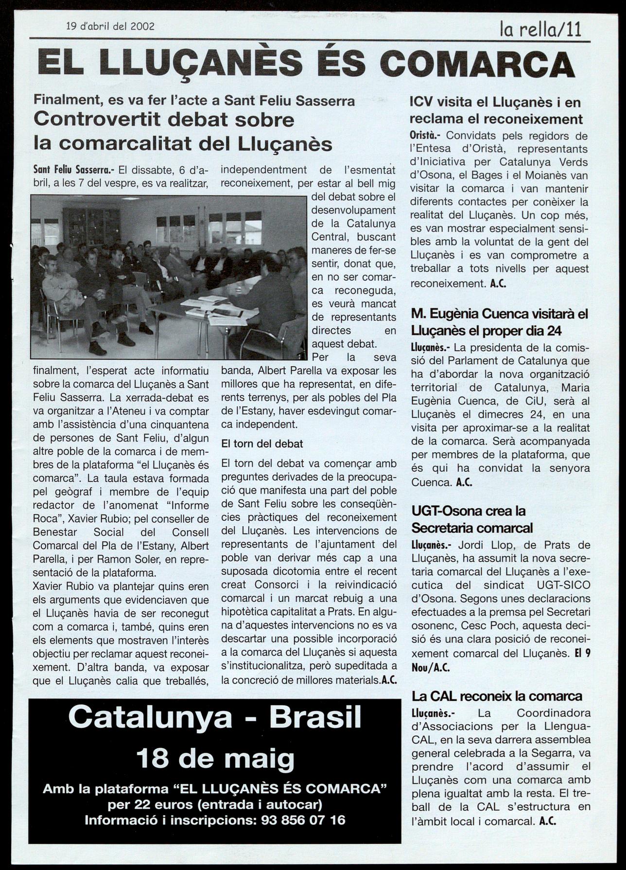 Lluçà.- El, passat dia 7 d'abril, a l'Estudi, a Lluçà, es va fer la festa de celebració del segon aniversari de la revista comarcal qratuïta la rella.