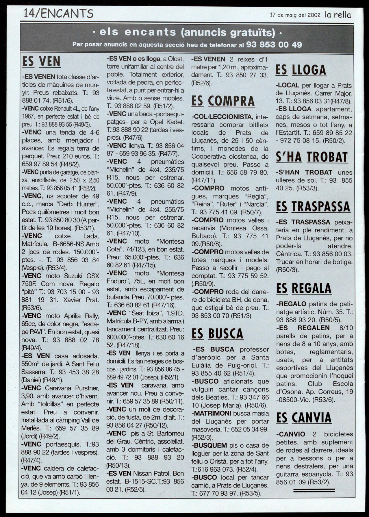 Per posar anuncis en aquesta secció heu de telefonar al 93 853 00 49