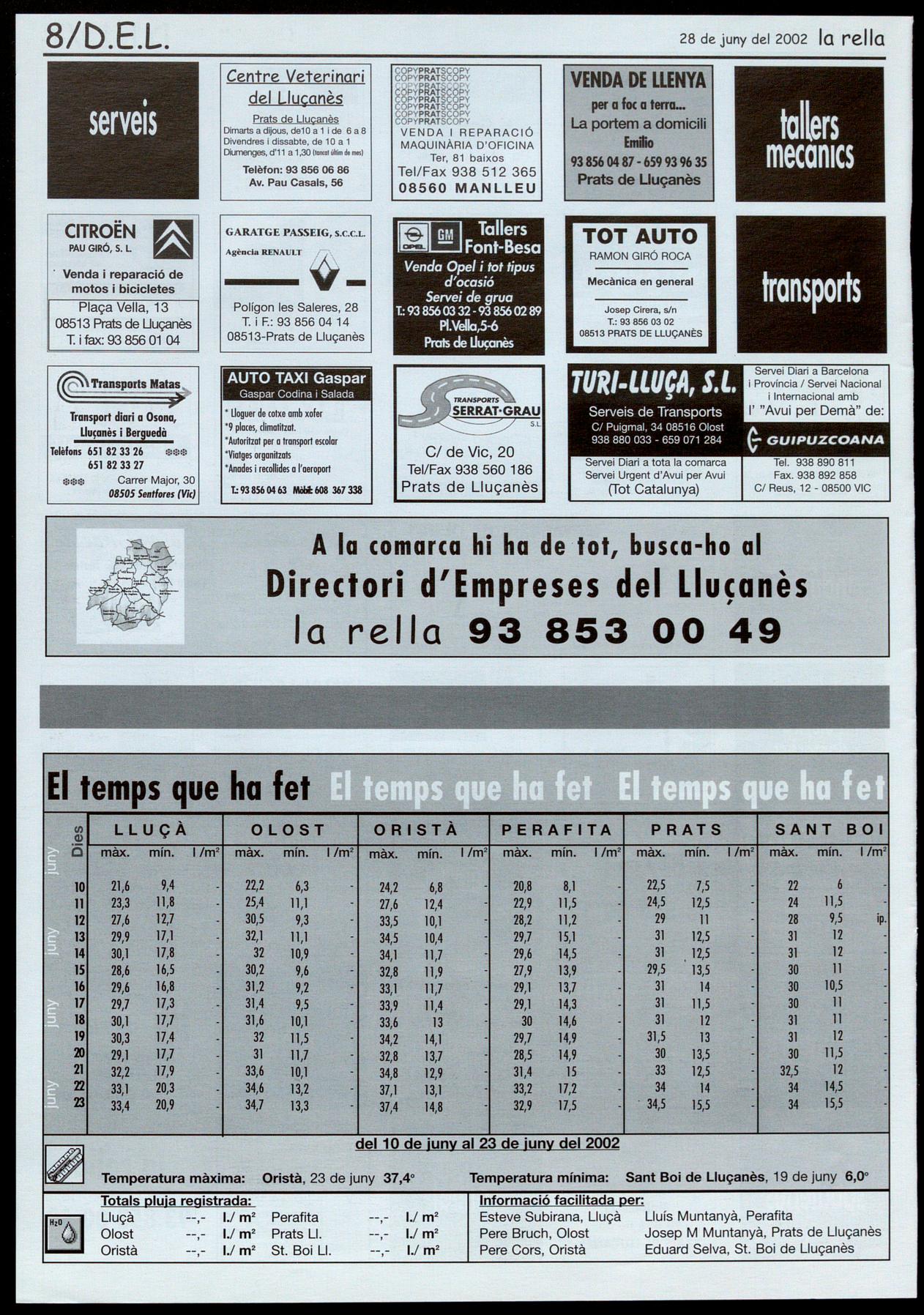 Lluçanès.- L'edició 2002 de la Volta Ciclista a Catalunya va passar per la comarca abans d'hora. Amb 45 minuts d'avançament sobre l'horari previst va circular la penúltima etapa de la clàssica catalana al seu pas pel Lluçanès, fet que va impedir que es concentrés prou públic per a un esdeveniment d'aquestes característiques. On més es va notar aquest fet va ser a la recta d'entrada a Prats de Lluçanès, on hi havia instal-lat un Sprint especial. En avançar-se considerable-