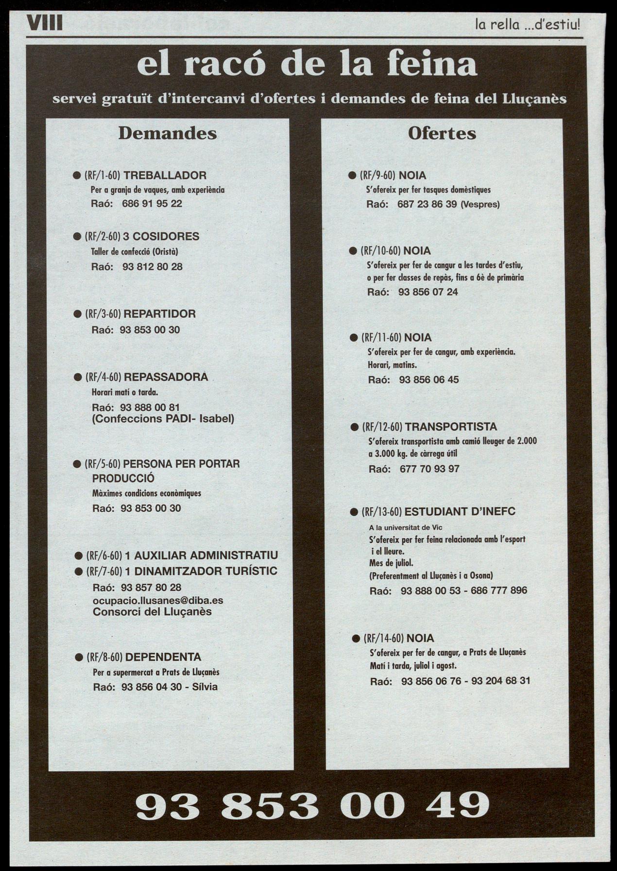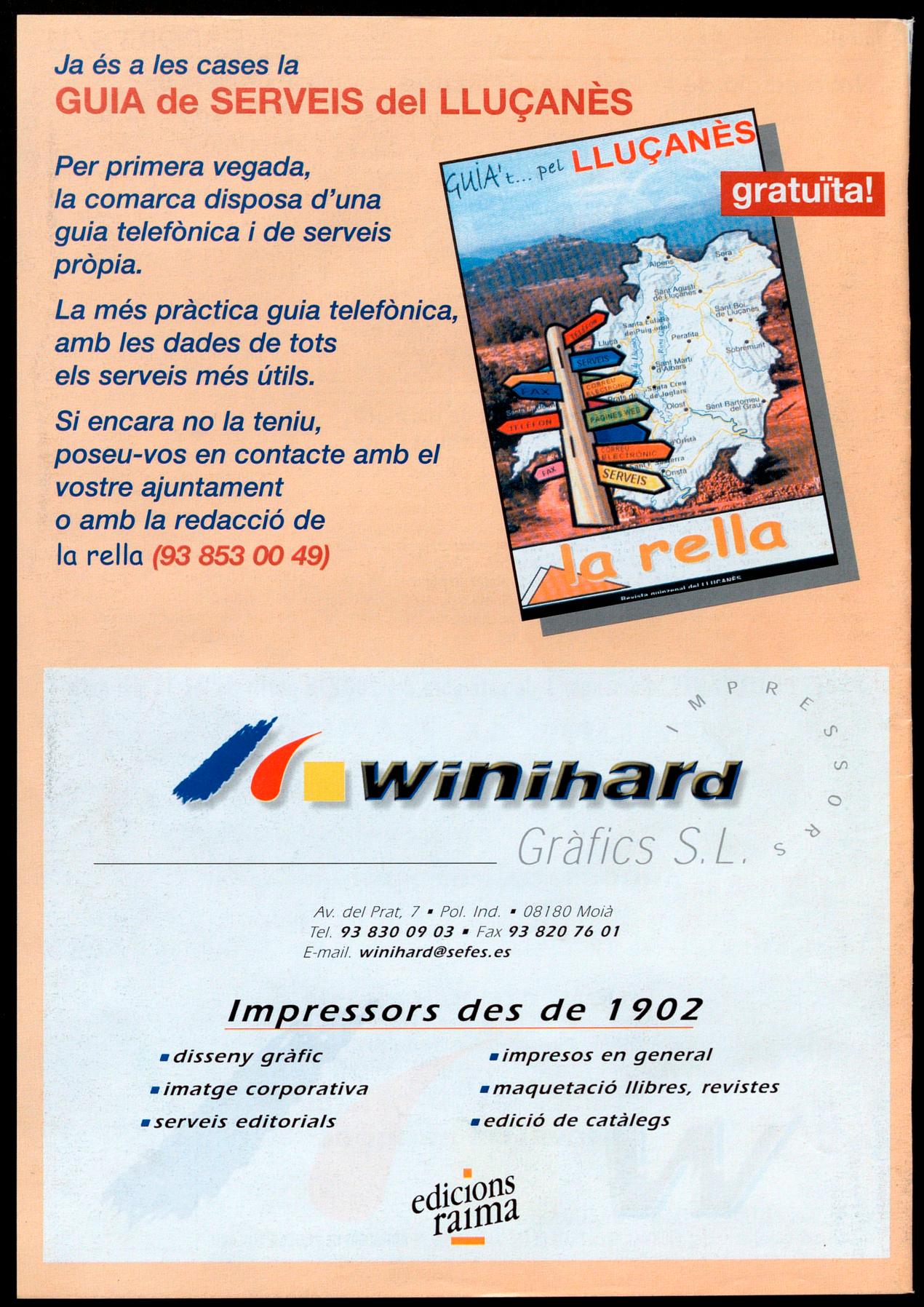 Per primera veqede, la comarca disposa d'una guia telefònica i de serveis pròpia. La més pràctica guia telefònica, amb les dades de tots els serveis més útils. Si encara no la teniu, poseu-vos en contacte amb el vostre ajuntament a amb la redacció de la rella (93 853 00 49)