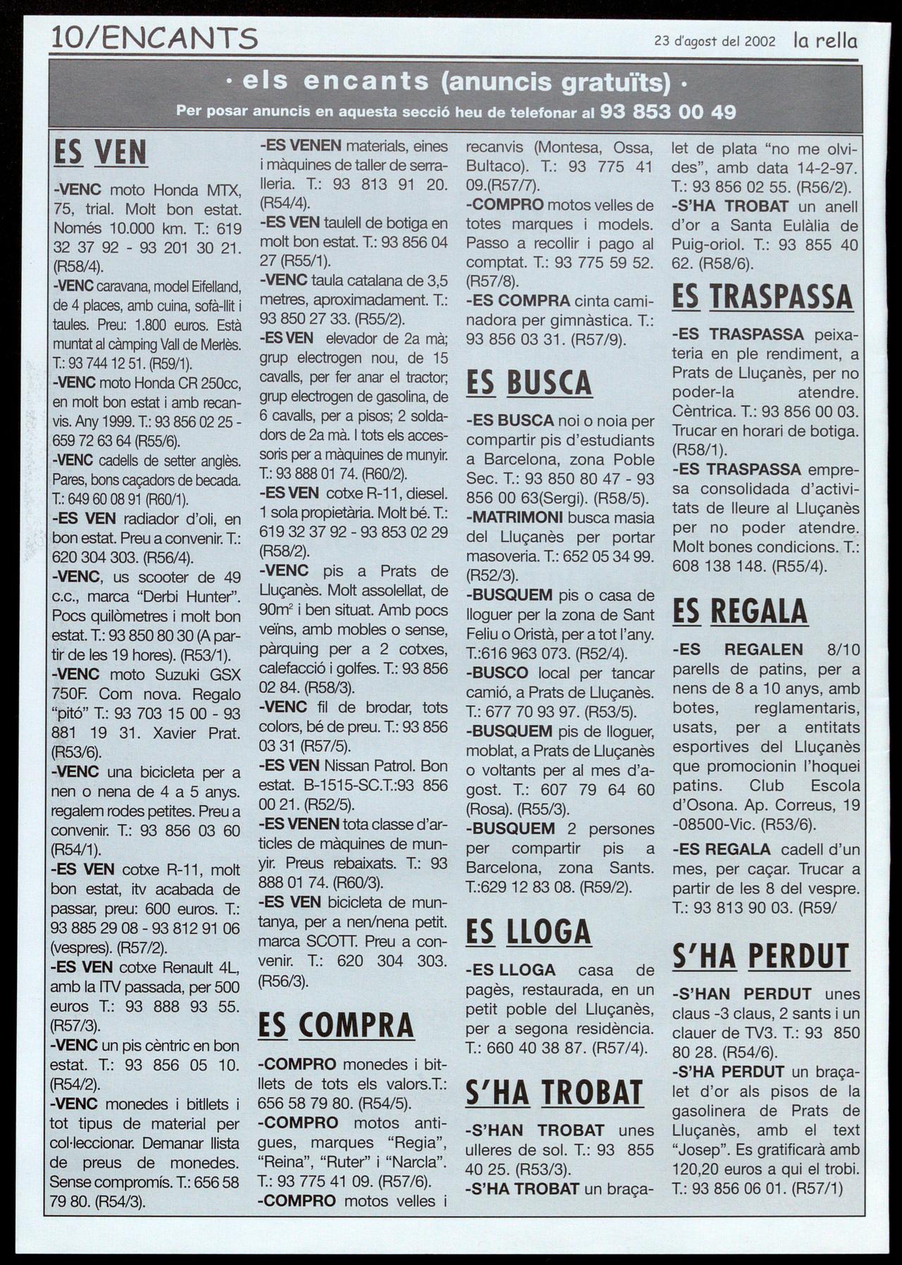 Carme Vivet (de 3 a 8 del vespre): 93 856 04 55 - Anna Cubinsà (Comercial Lluçanès): 93 856 02 77 - Teresa Vacca (cal Pey): 93 856 03 23