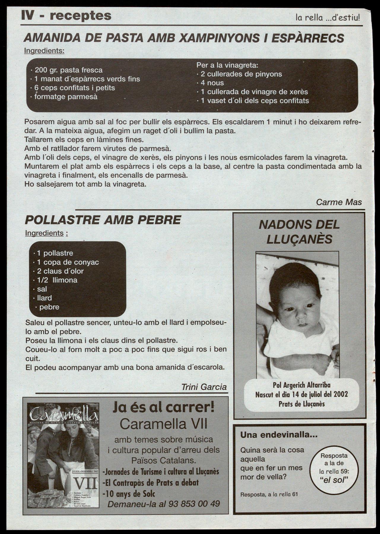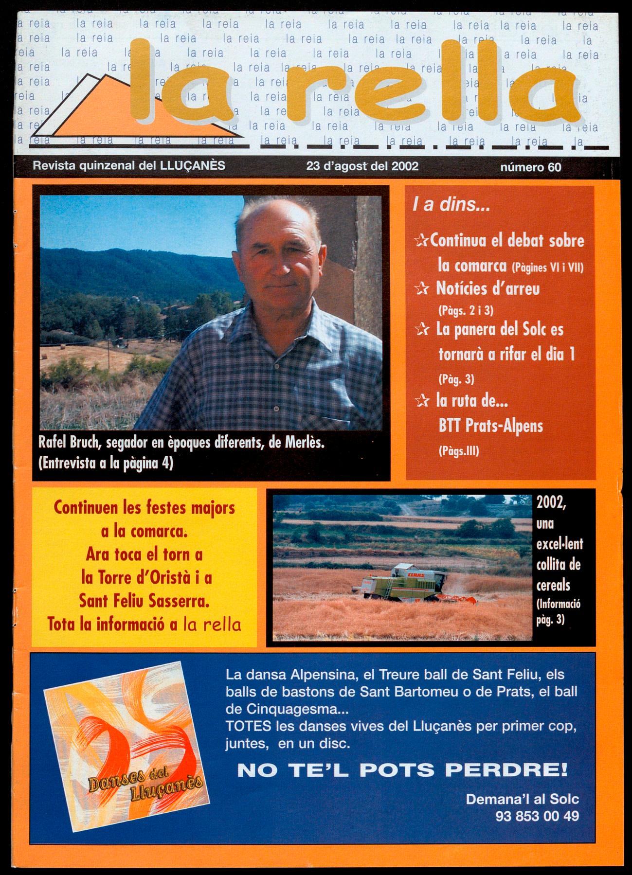 LA PANERA DEL SOLC-2002 ES TORNARÀ A RIFAR. El proper dia 1 de setembre, a Sant Martí d'Albars es farà l'acte de lliurament de la panera del Solc 2002, a partir de la 6 de la