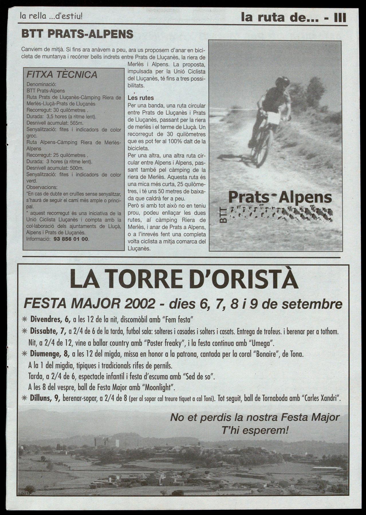 C/Major, 21 08513 Prats de LluçDnès T. 93 856 Ol 10