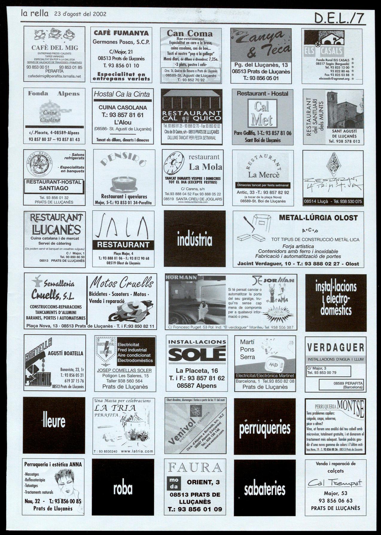 JOSEP COMELLAS SOLER Polígon Les Saleres, 15 Taller 938 560 564 Prats de Lluçanès
