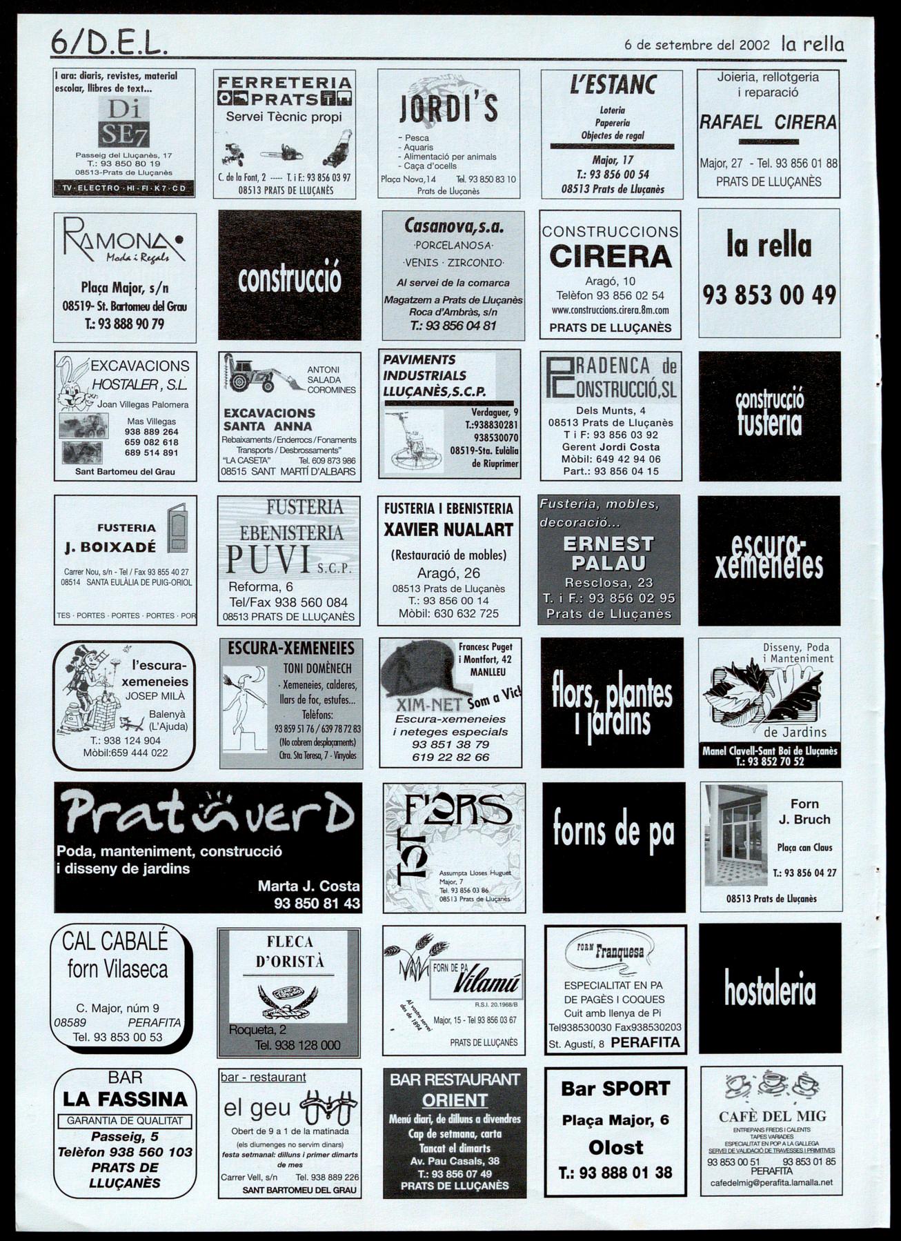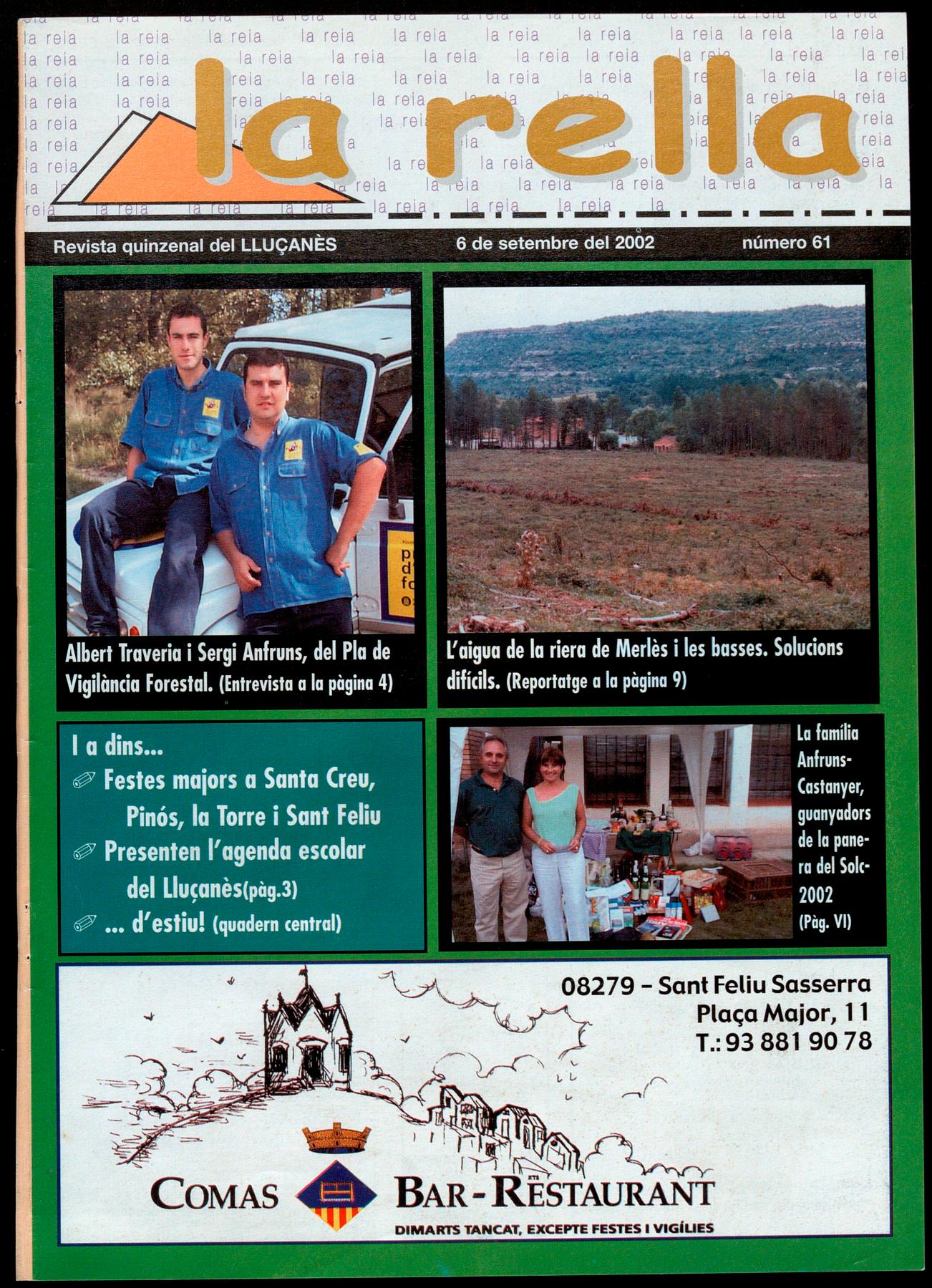 ARTICLES A "DOVELLA" SOBRE SANT FELIU SASSERRA. L'historiador Josep Albert Planes Ball, membre del Centre d'estudis del Lluçanès ha escrit un article sobre la postguerra a Sant Feliu Sasserra a la revista Dovella, editada pel Centre d'estudis del Bages, en el número corresponent a l'estiu del 2002. Aquest article ve a ser una continuació d'un altre anterior, del mateix autor, que parlava sobre l'època de la República al mateix municipi que va sortir en el número de primavera d'enguany. R.R.