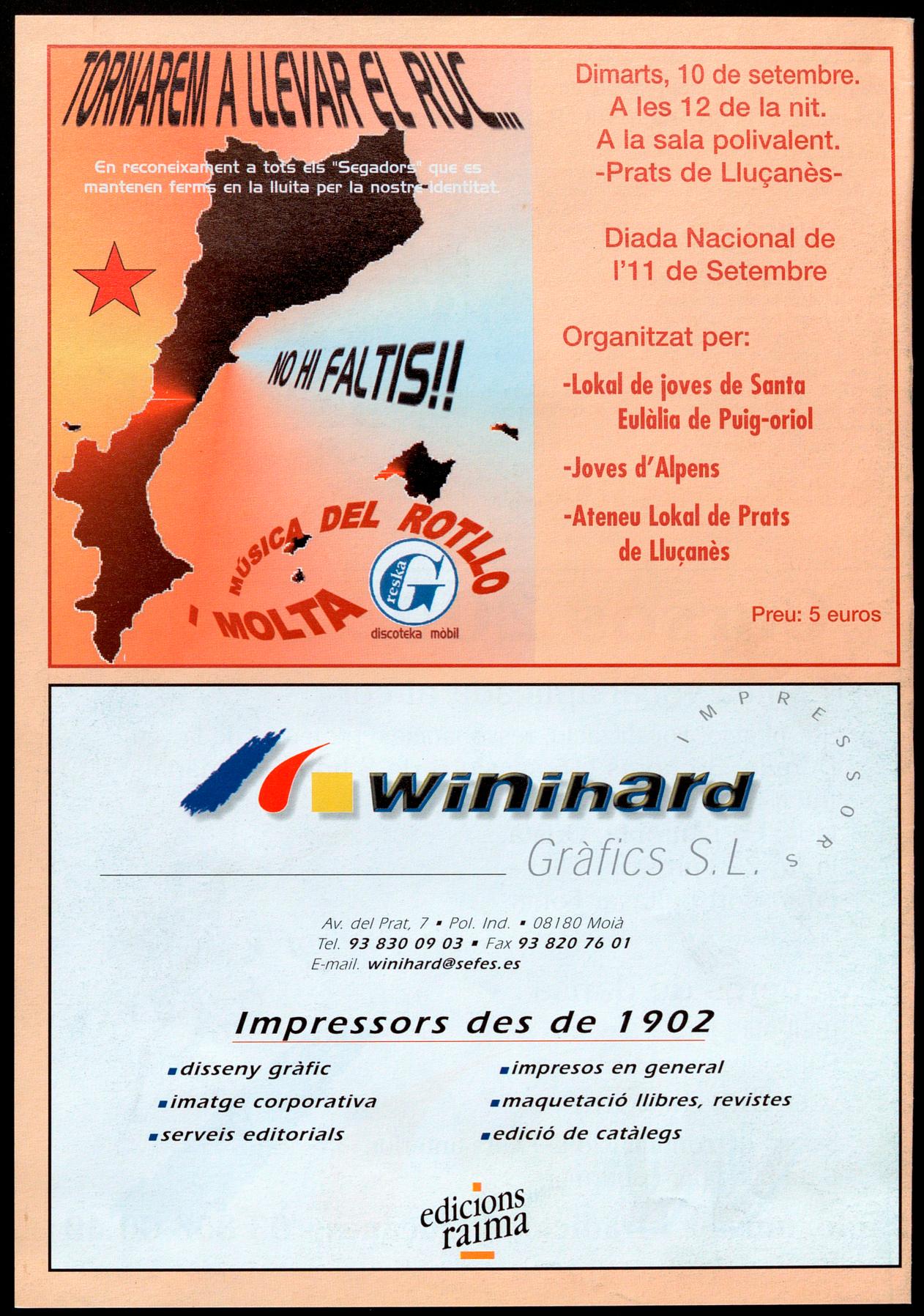 Dimarts, 10 de setembre. A les 12 de la nit. A la sala polivalent. -Prats de Lluçanès-