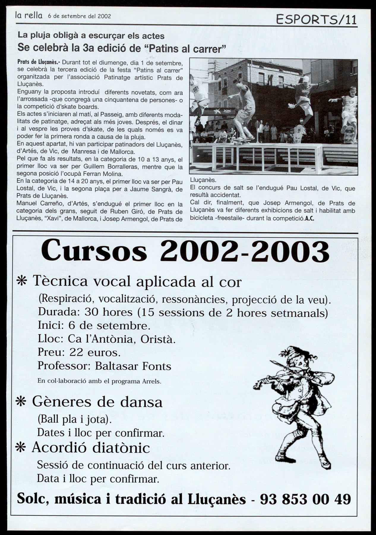 Prats de Lluçanès.- Durant tot el diumenge, dia 1 de setembre, se celebrà la tercera edició de la festa "Patins al carrer" organitzada per l'associació Patinatge artístic Prats de Lluçanès.