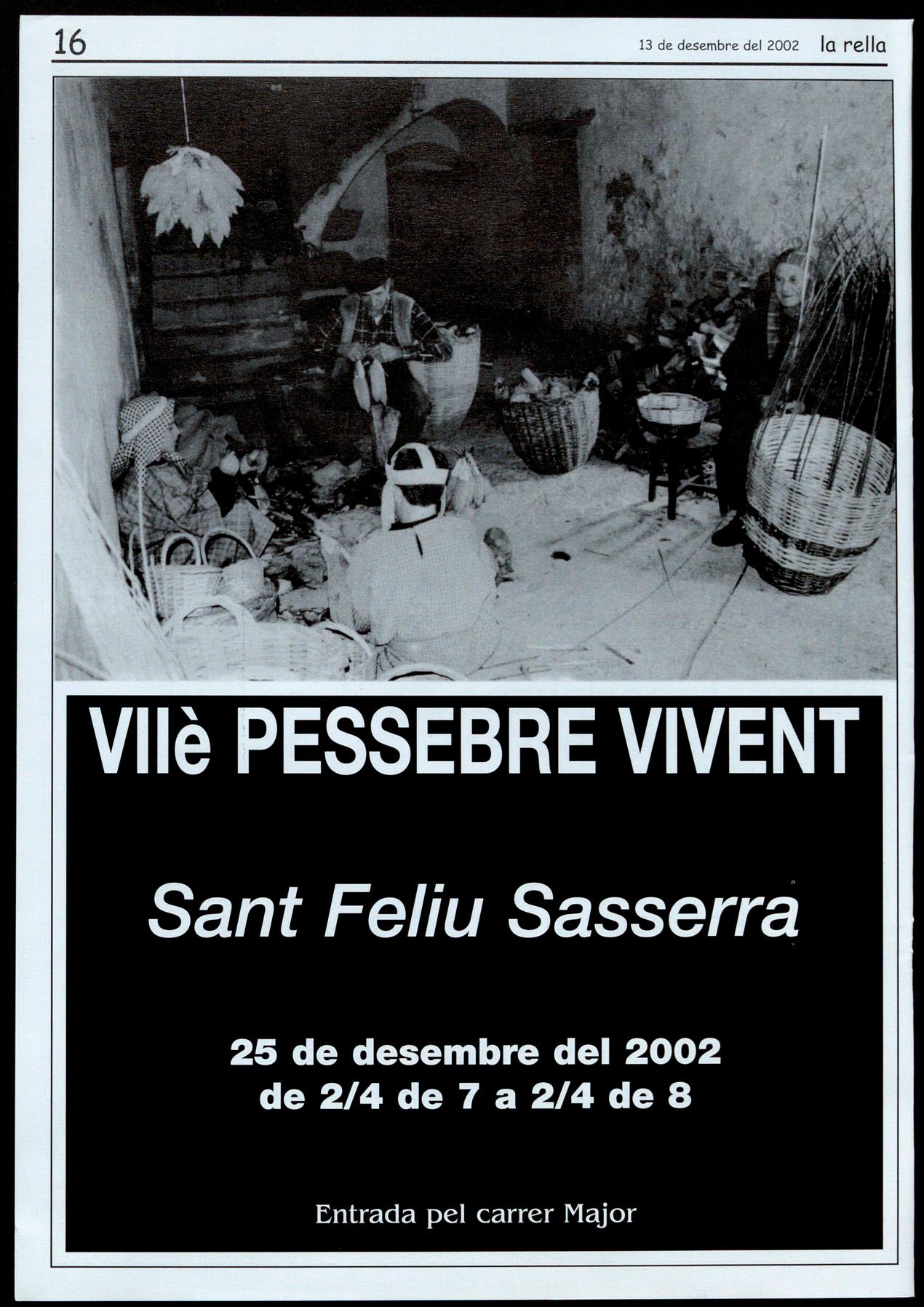 Sant Fe6u Sasserra.- Nadal. Vlè Pessebre vivent, de 2/4 7 a 2/4de 8 de latarda.Entradapel carrer Majar.