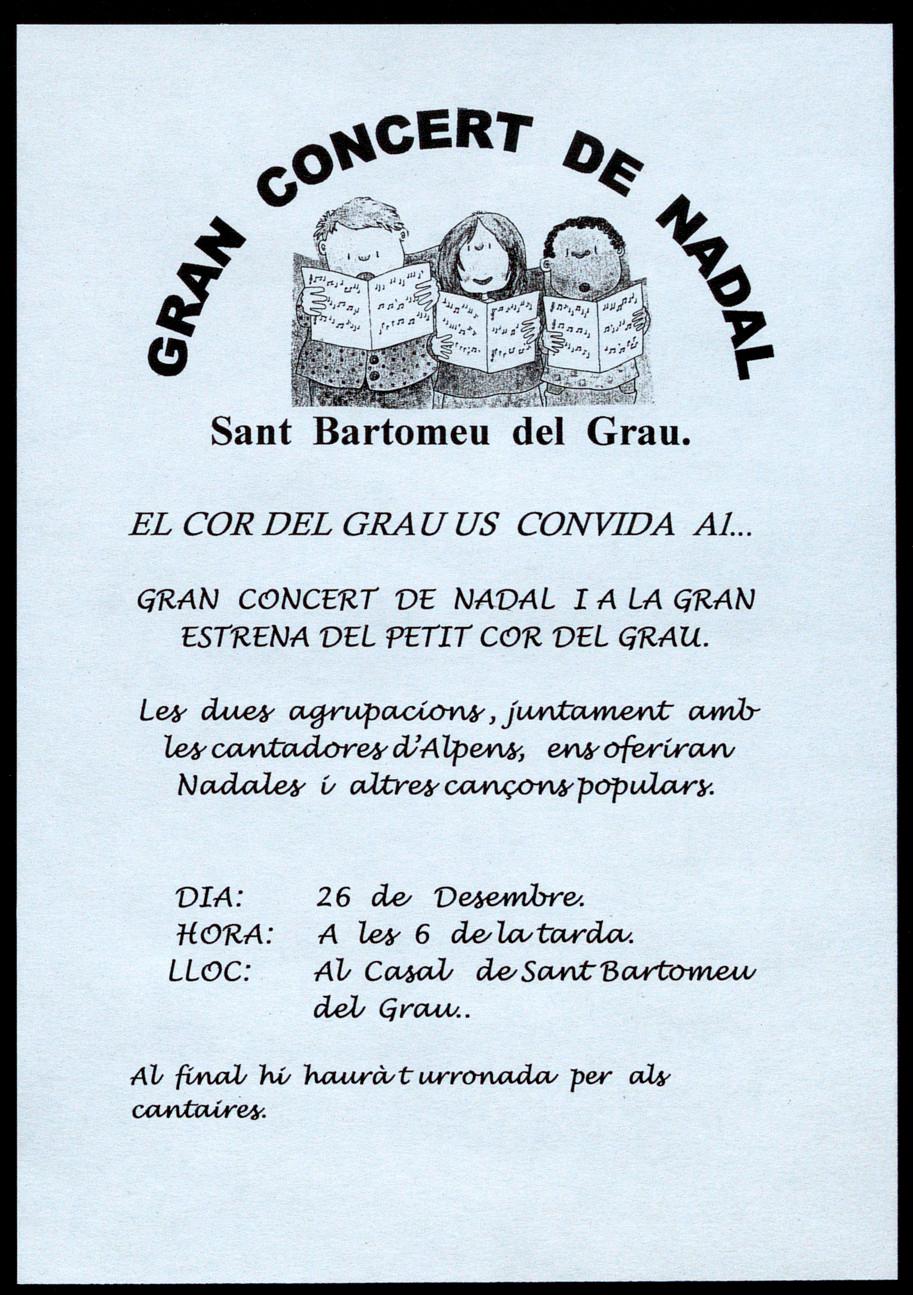 Oristà.- Cantadade nadales cançons populars a (àrrec del Cor el Grau de Sant Barlomeu d�1 Grau. A les 6 de la tarda, a l'església parroquial.
