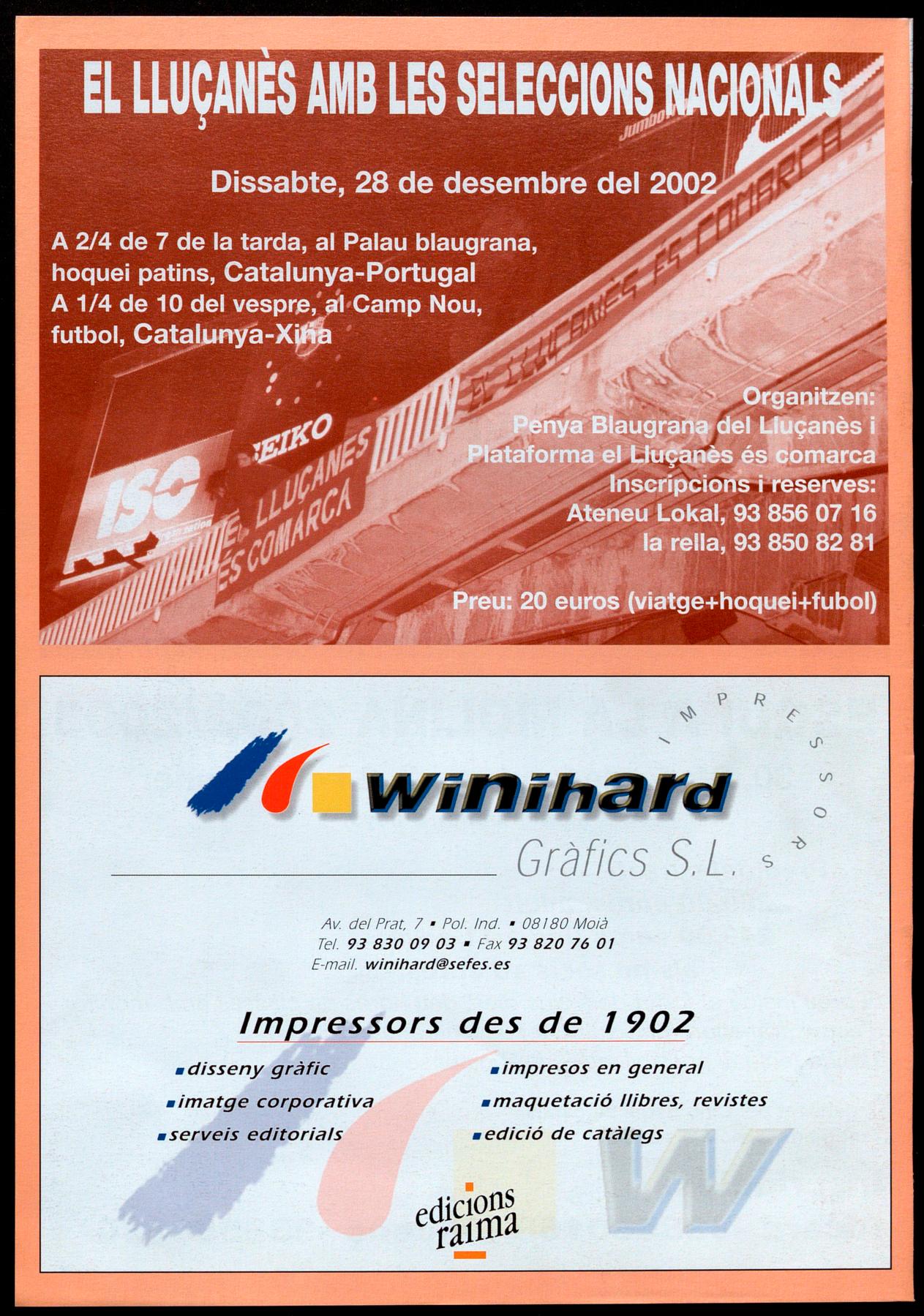 Uucanès.-Autocars per anar a� partits de la selecció (atalana d'hoquei-Portugal- i defutbol-Xina-. Sortidesdes de Sant Boi de Uucanès i Prats de Uucanès.