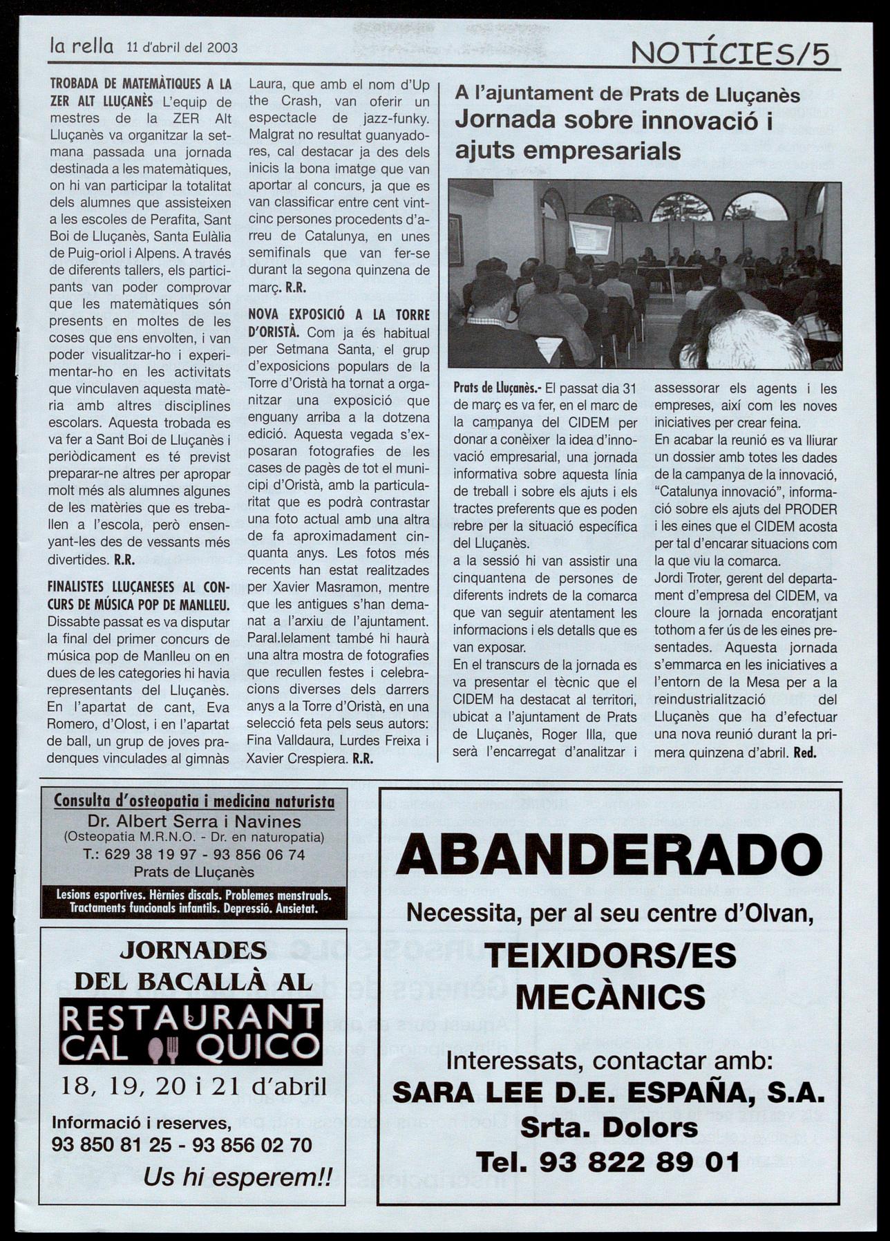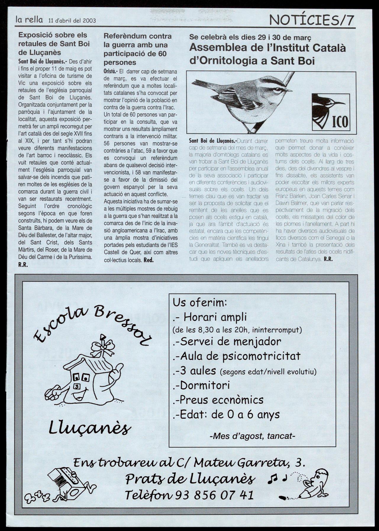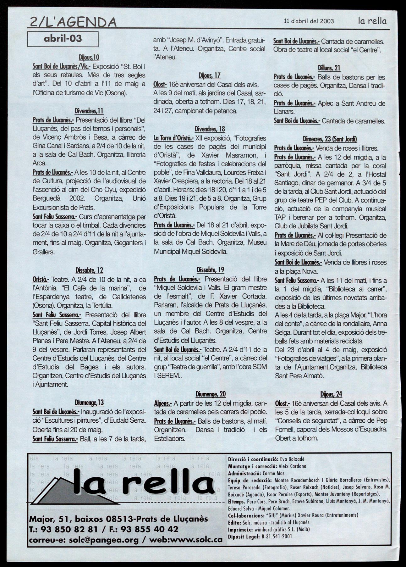 Teresa Parareda (Fotografio), Roser Reixach (Notícies), Josep Salvans, Roso M. Boixadé (Agenda) Isaac Peraire (Esports), Montse Juvanteny (Reportatges). ra Pia