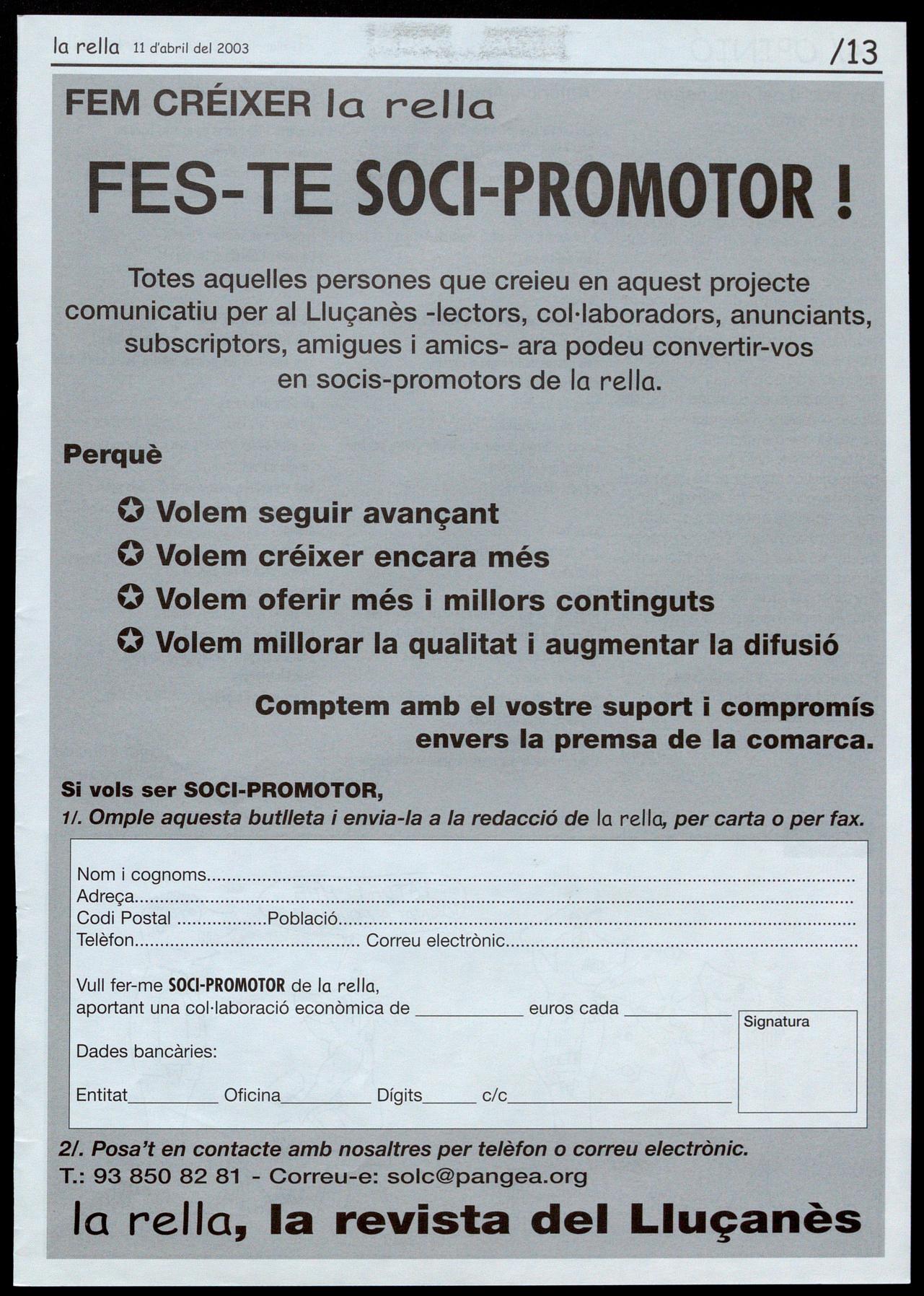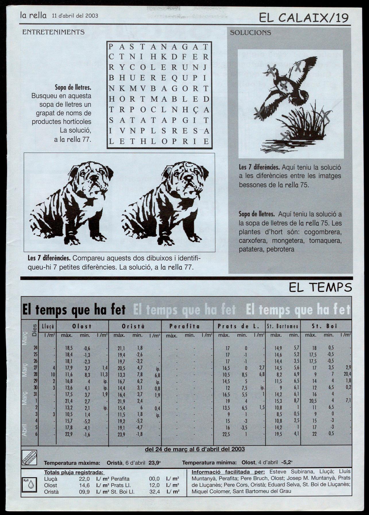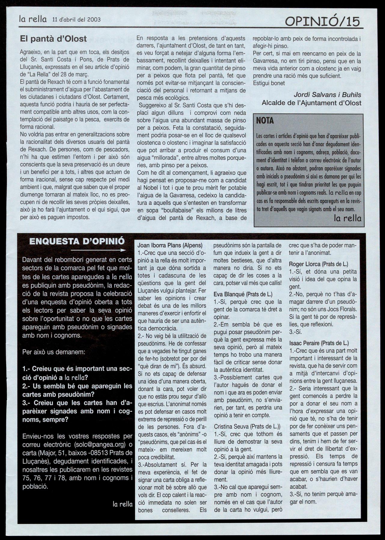 Teresa Parareda (Fotografio), Roser Reixach (Notícies), Josep Salvans, Roso M. Boixadé (Agenda) Isaac Peraire (Esports), Montse Juvanteny (Reportatges). ra Pia