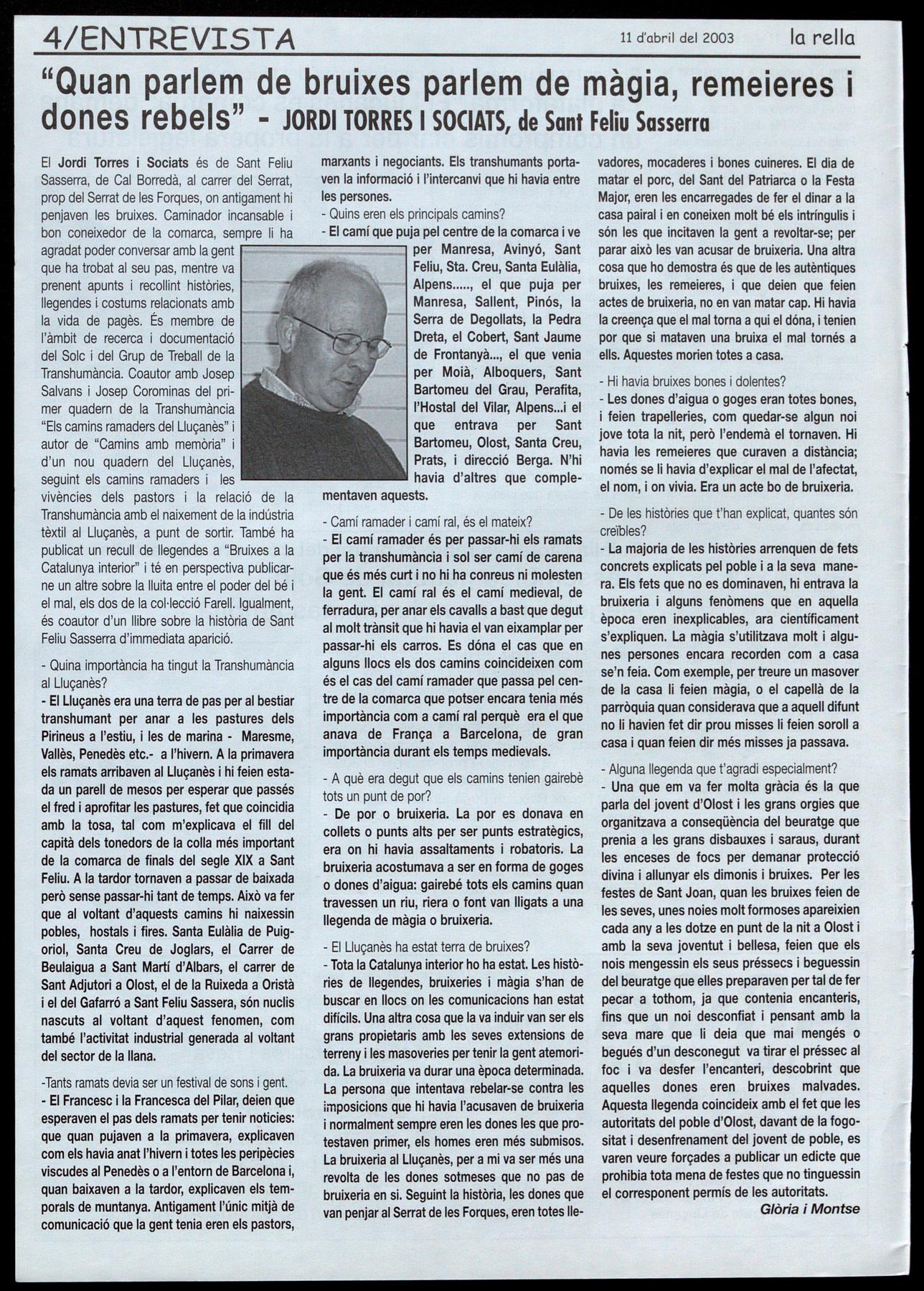 "Quan parlem de bruixes parlem de màgia, remeieres i dones rebels" - JORDI TORRES I SOCIATS, de Sant Feliu Sasserra