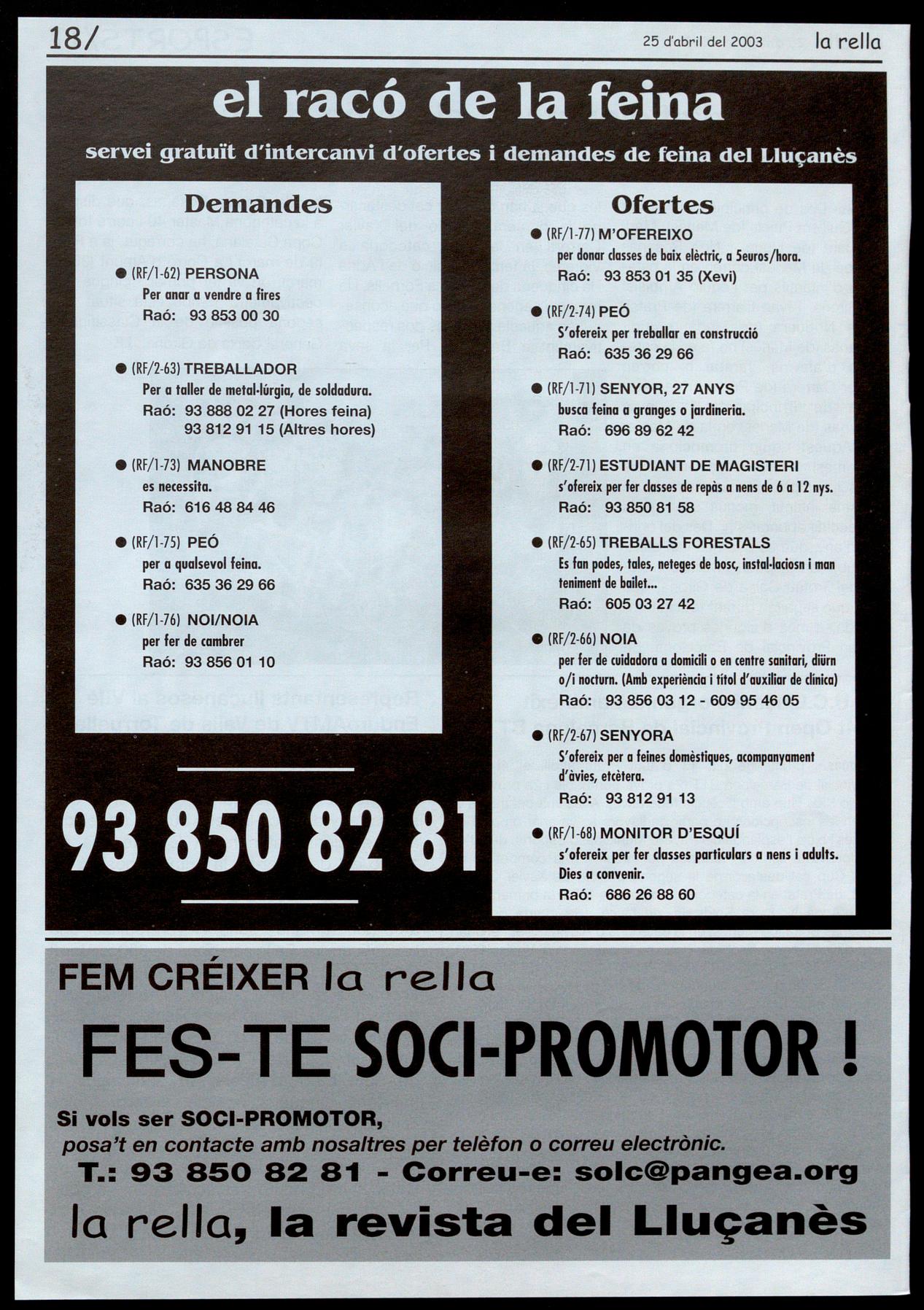 25 d'abril del 2003 la rella
