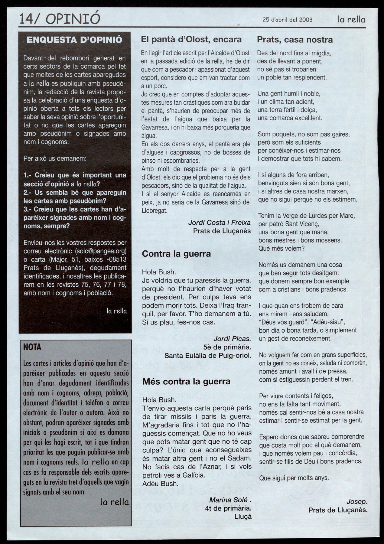 Lluçanès.-Prop de 600 persones van votar en les convocatòries del referèndum contra la guerra a I'lrac que es van fer a la comarca.
