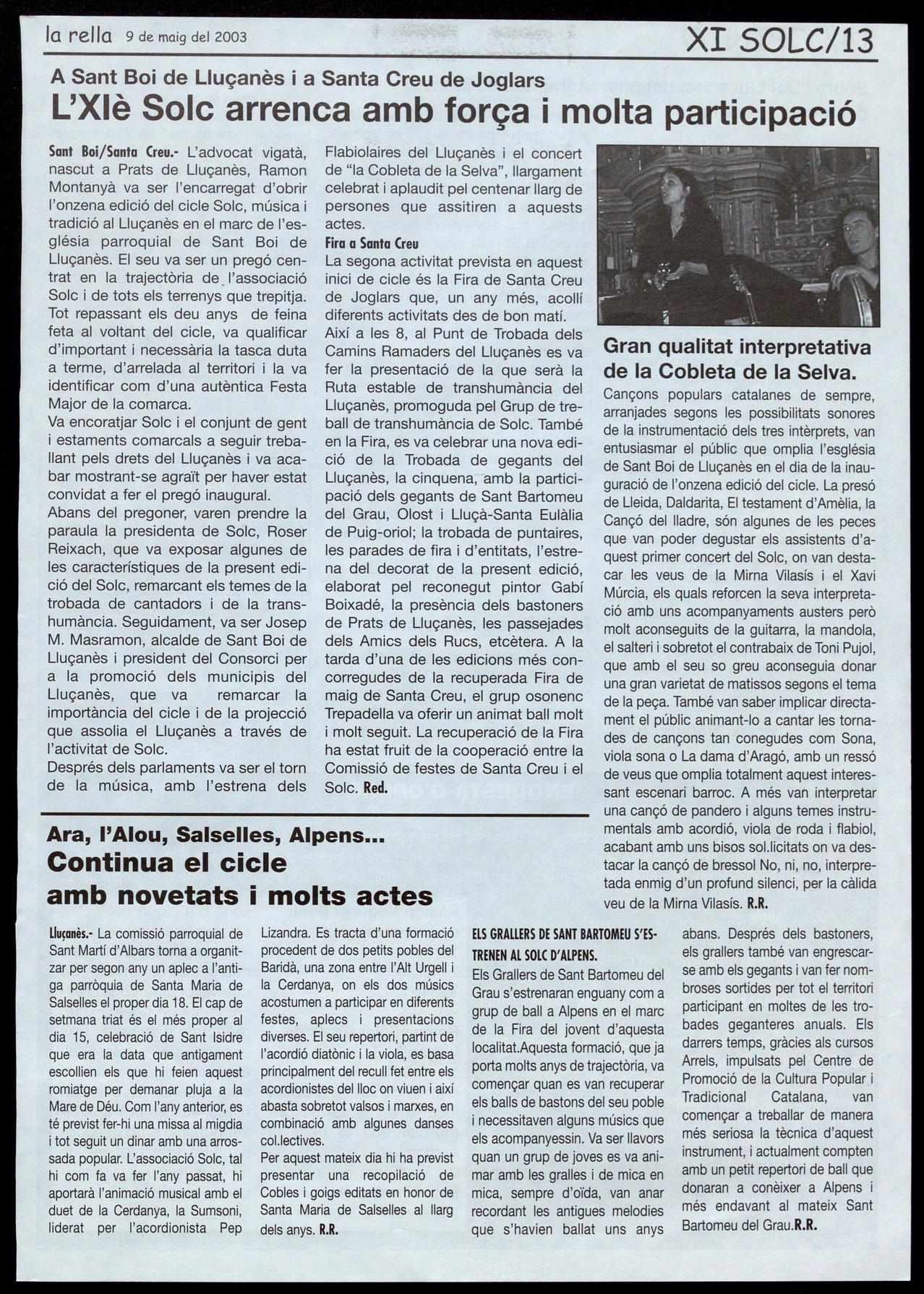 Col-lubernclens: Xavier Rouro M. Rocodembosch(Entreteniments), More Riera Edita: Solc, música tradició ol lluçanès