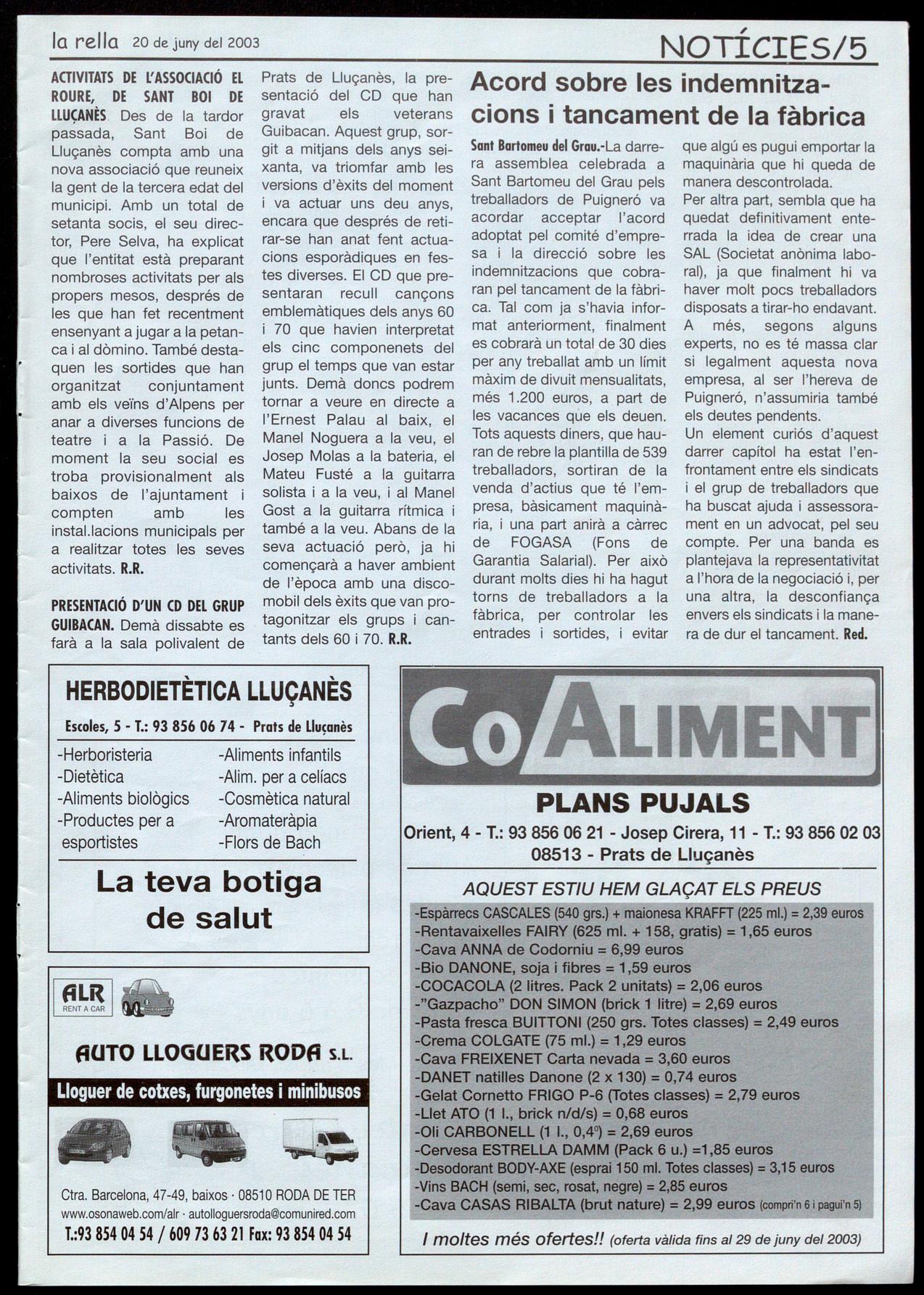20 de juny del 2003 la rella