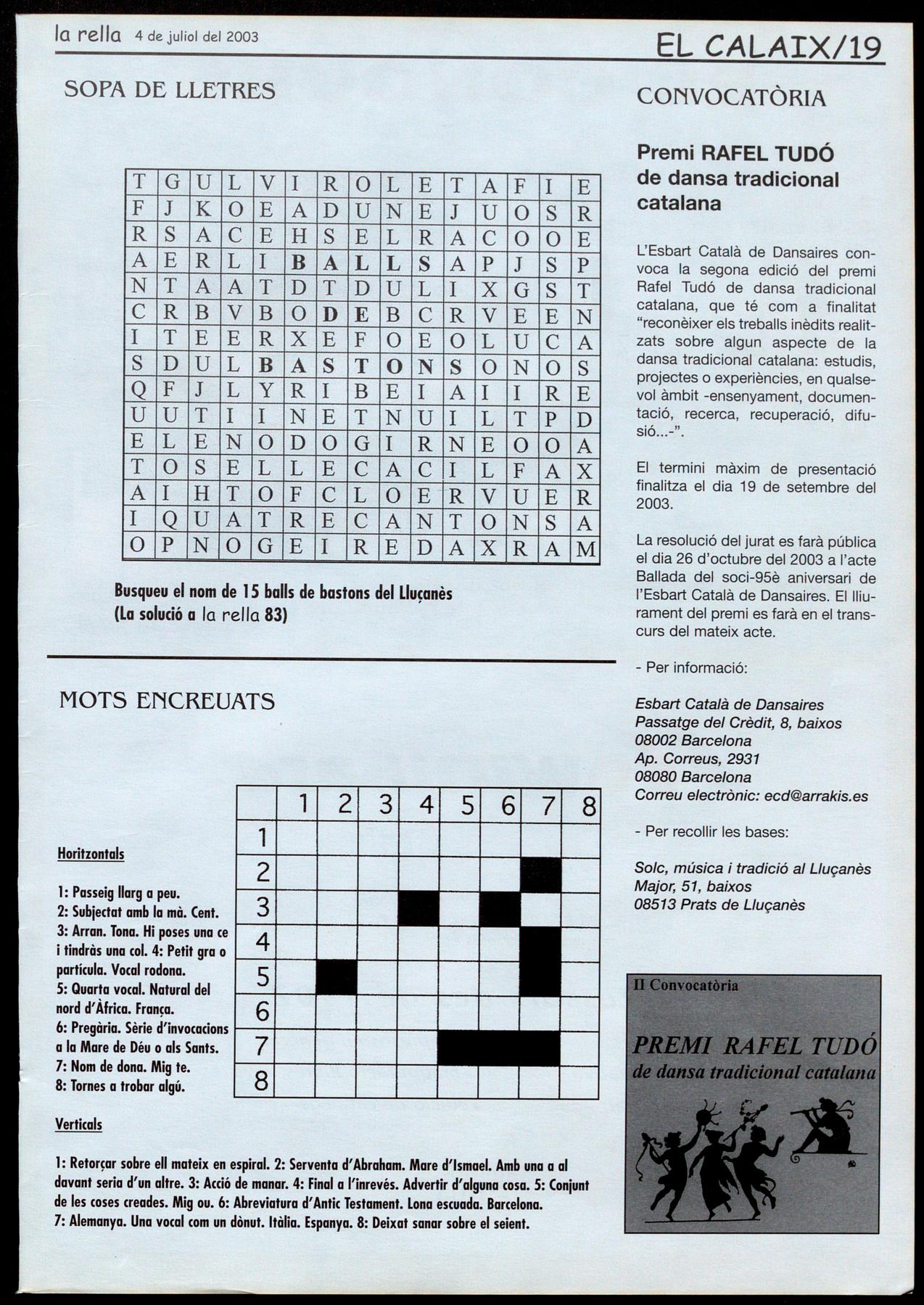 Busqueu el nom de 1 S balls de bastons del Lluçanès (La solució a la rella 83)
