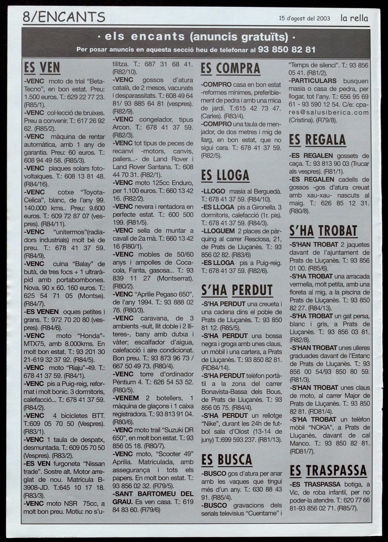 Mojor,49 T.: 93 8S6 00 60 08S13 Prats de Lluçanès